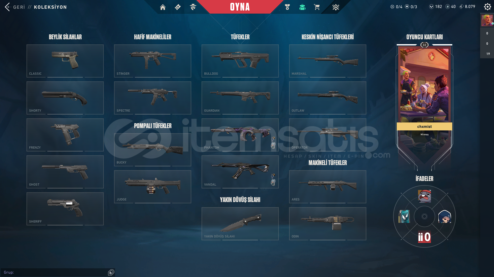 Valorant skinli E-Postalı hesaptırULUPENÇE VANDAL ZİFİRİ PHANTOM KARABORSA CLASSİC BULUNAN HESAPTIR.Rank: DERECESİZSunucu: TRMağaza: TRMailli hesaptır bilgileri size devredilmektedir, mevcut bilgileri kendi bilgileriniz ile değiştirebilirsiniz.Ürünler fotoğraftakiler ile bire bir aynı hesaptır, farklı hesap değildir