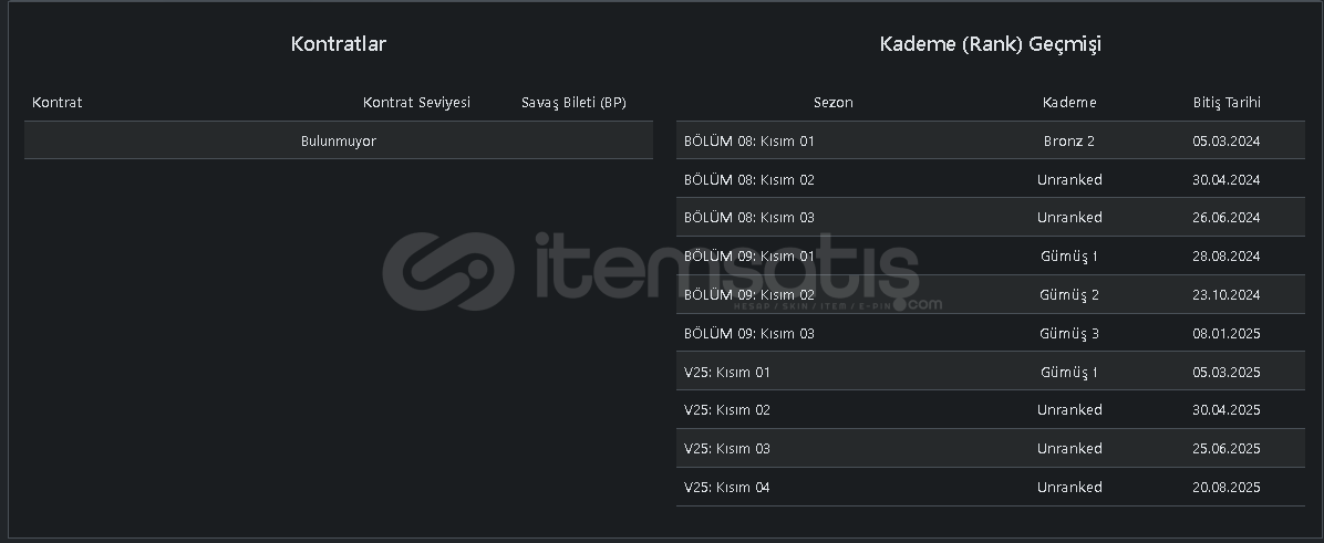 CLASSIC - 2 BATTLE PASSSHORTY - 1 BATTLE PASSFRENZY - 1 BATTLE PASSGHOST - Özel Harekat Ghost - 1 BATTLE PASSSTINGER - 1 BATTLE PASSSPECTRE - 1 BATTLE PASSBULLDOG - 1 BATTLE PASSGUARDIAN - 1 BATTLE PASSPHONTOM -1 BATTLE PASSBIÇAK - Himaye ÇekiçMARSHAL -1 BATTLE PASSOPERATOR - YILDIZ BELASI OPERATÖR BATTLE PASSODİN - 1 BATTLE PASS80 LEVEL HESAPPAZARLIK OLUR İLK MAİL DURUYOR İÇİNDE 270 VP VE 200 Radyenit varGECE PAZARIAEMONDIR KILI&Cce...