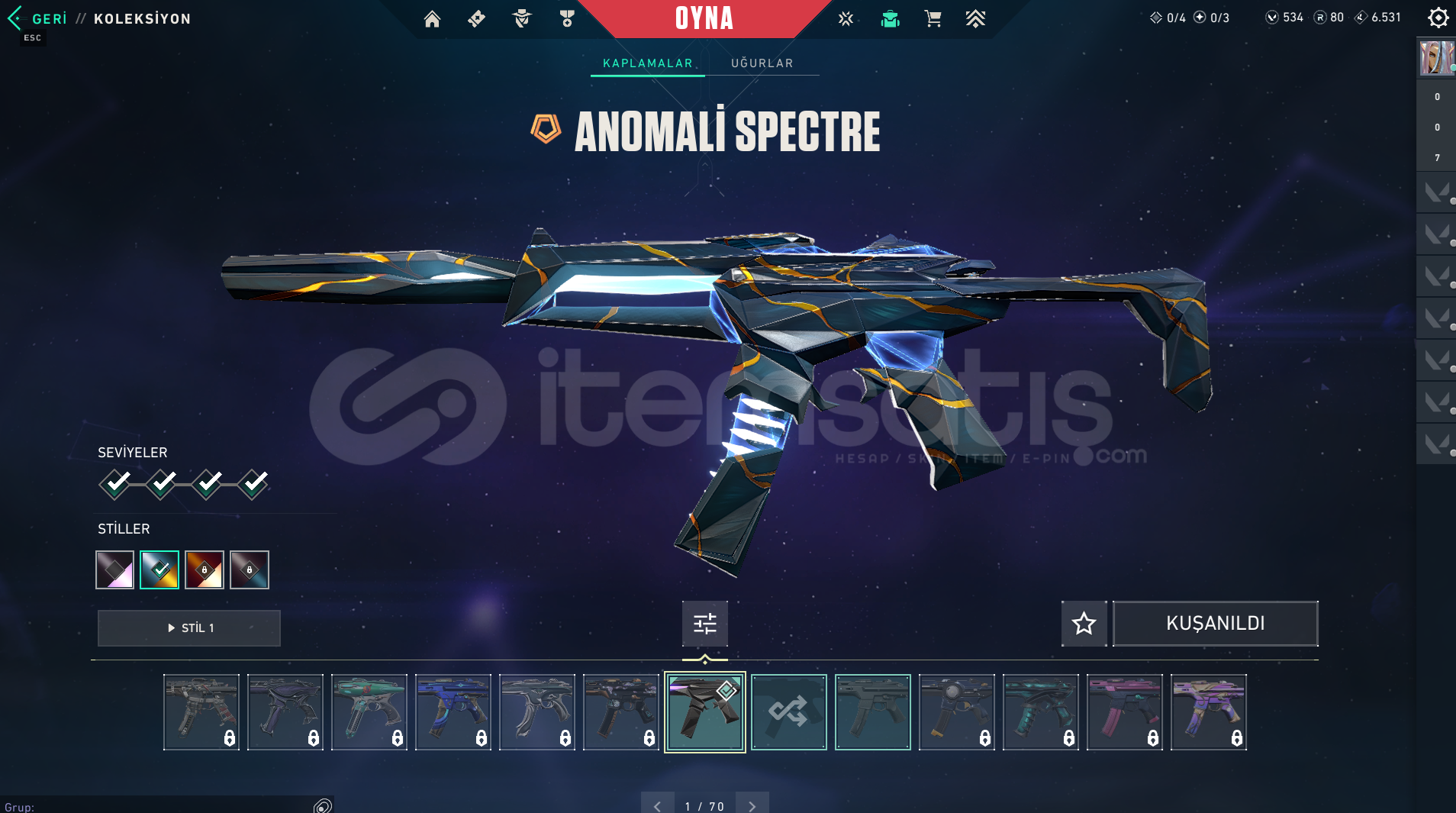 Hesabın eski actlerdeki rankı plat3 şu an unrankeddelipop balta yağmacı hançer şakıyan çelikejder vandal yağmacı vandaliyon phantom delipop phantomanomali spectrefatih ghostyağmacı sherrifdelipop opve battlepass skinleri mevcutekstradan 500 küsürde vp ve 80 radyant varyeni çıkan karakter hariç bütün karakterler açık