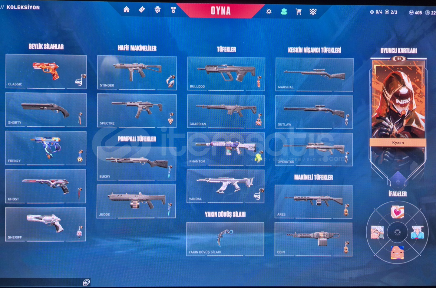 -Kuronomi Vandal-Gaia Vandal- Evori Vandal- Dolmir Vandal- Seri Tetik phantom-İyon Şerif- Rgx pro krambit- Vct NRG classic- NRG oyuncu kartı- 225 radyanit puanı- 405 VP bulunmaktadır hesapta uyguna bırakıyorum. Mail değişimi vardır.