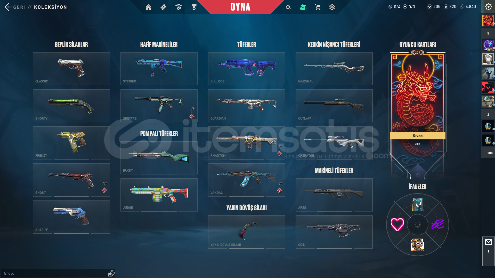 Ayrıca lol hesabıda bağlıdır ve orada da skin vardır.Rank: Elmas 1 (geçmiş Immortal – yüksek MMR)Vandal: Ejder, Yağmacı, Ağaç, RGXPhantom: Yağmacı, Oni, DelipopGhost: Yağmacı, FatihBıçaklar: Özel Harekat, Kelebek, Yağmacı, Karambit, Jett BıçağıOperator: İyonSpectre: YağmacıOdin: YağmacıBattle Pass: 2. Bölüm 3. Kıs&...