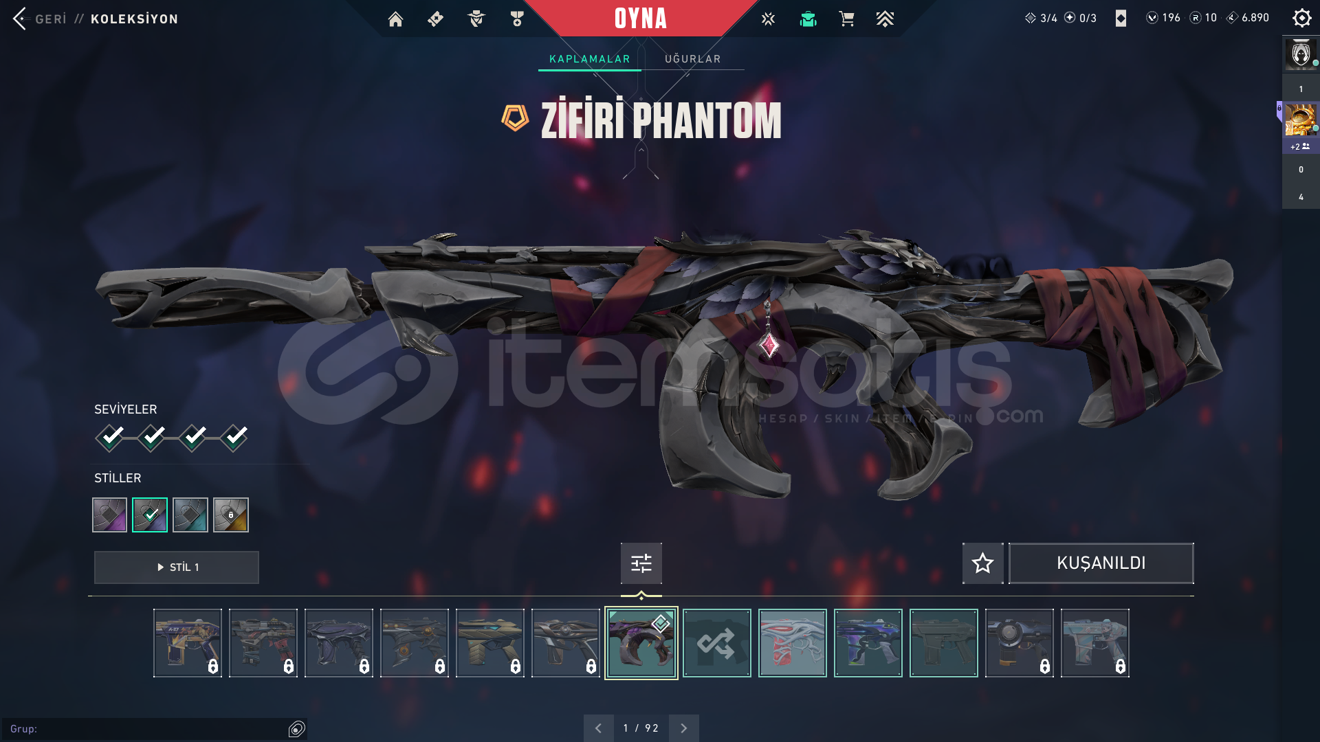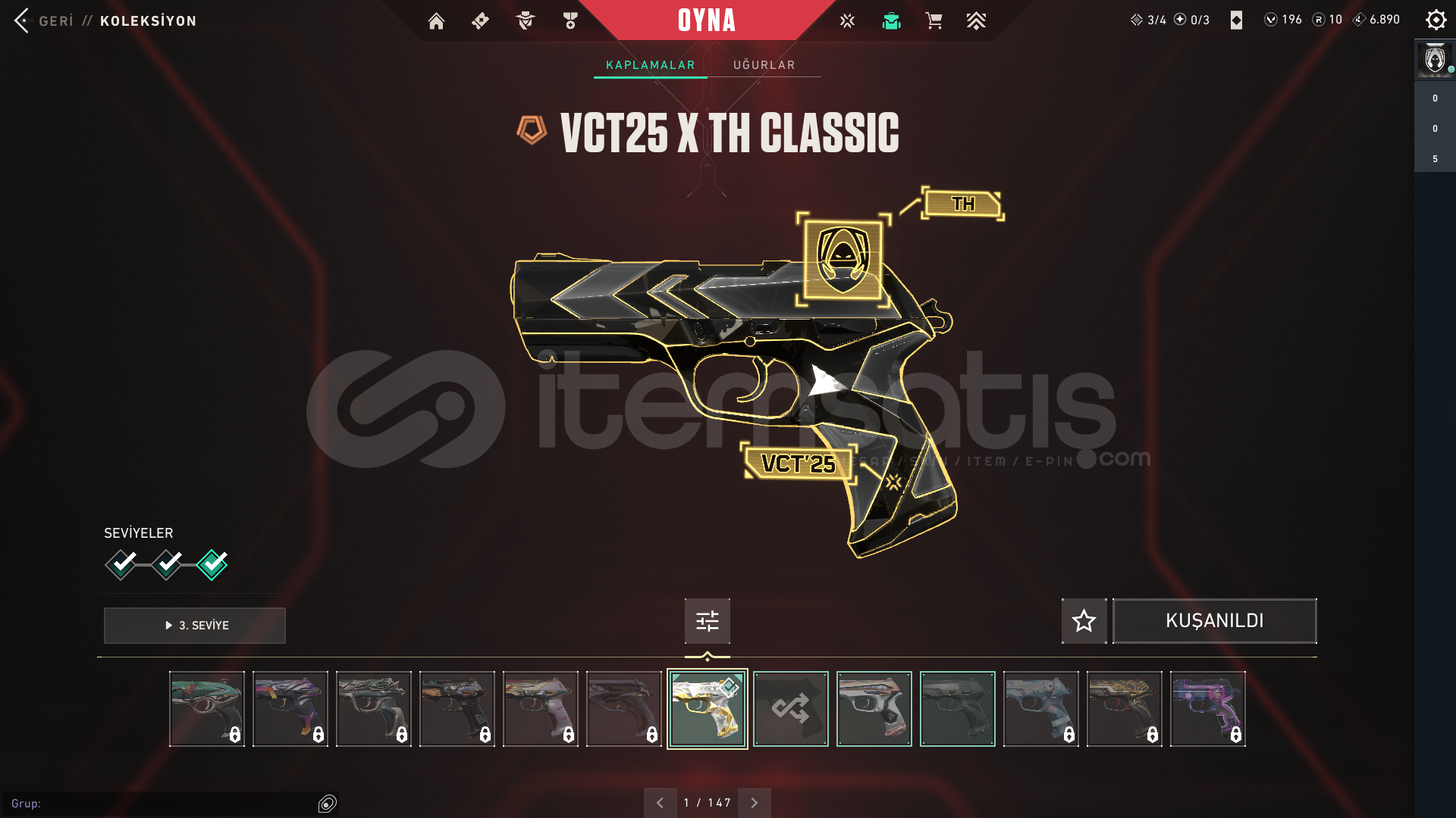 VCT 25 CLASSİCVCT 25 CARAMBİT+1 BIÇAK DAHACYRAX VANDALEJDERİN BUYRUĞU VANDALGAİA PHANTOMZİFİRİ PHANTOMKAOS OPERATOR,SİHİRPUNK SHERİFHESAPTA 1 KEZ SAVAŞ BİLETİ AÇILMIŞTIR+DİA 2 HESAP.HESABIN TEK EKSİSİ İSİM KARTI YOK>PAZARLIK YAPILABİLİR ÇOK BOZMASSA