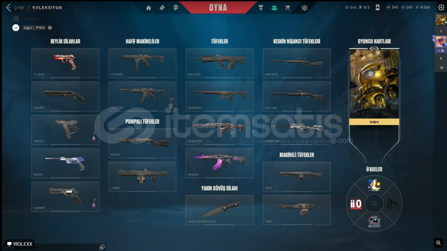 1900 ₺ değerinde ŞAHSIMA AİT FIRSAT, EMEK VALORANT HESABI SATILIKTIR! SÜNNETTEN PAZARLIK YAPILACAKTIR!Hesap içerisinde bulunanlar:Dolmir Vandal TÜM RENKLERİ VE GELİŞTİRMELERİ AÇIKTIR.Felaketin Kalbi PhantomTÜM RENKLERİ VE GELİŞTİRMELERİ AÇIKTIR.Yağmacı OperatörTÜM RENKLERİ VE GELİŞTİRMELERİ AÇIKTIR.DİĞER HESAP DETAYLARIHESAP LEVE...