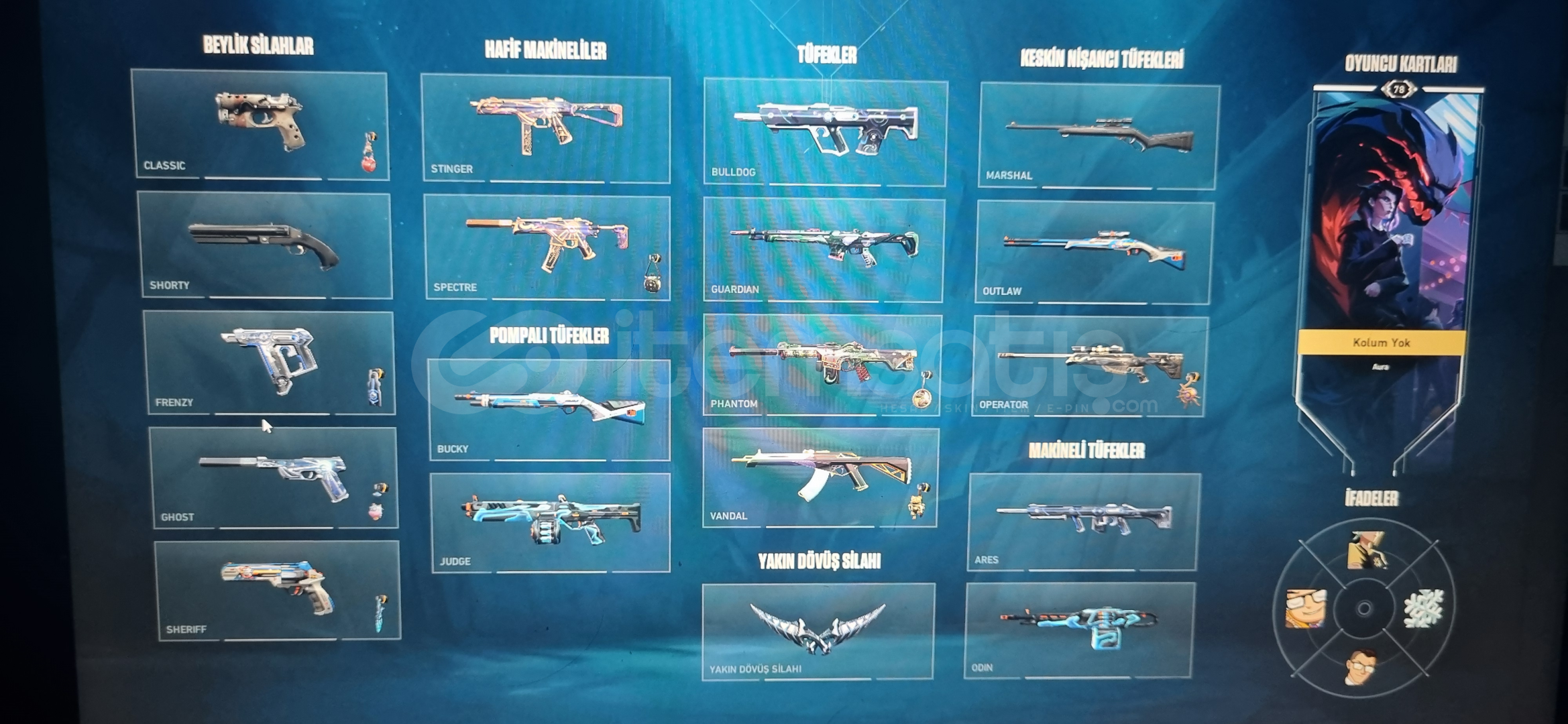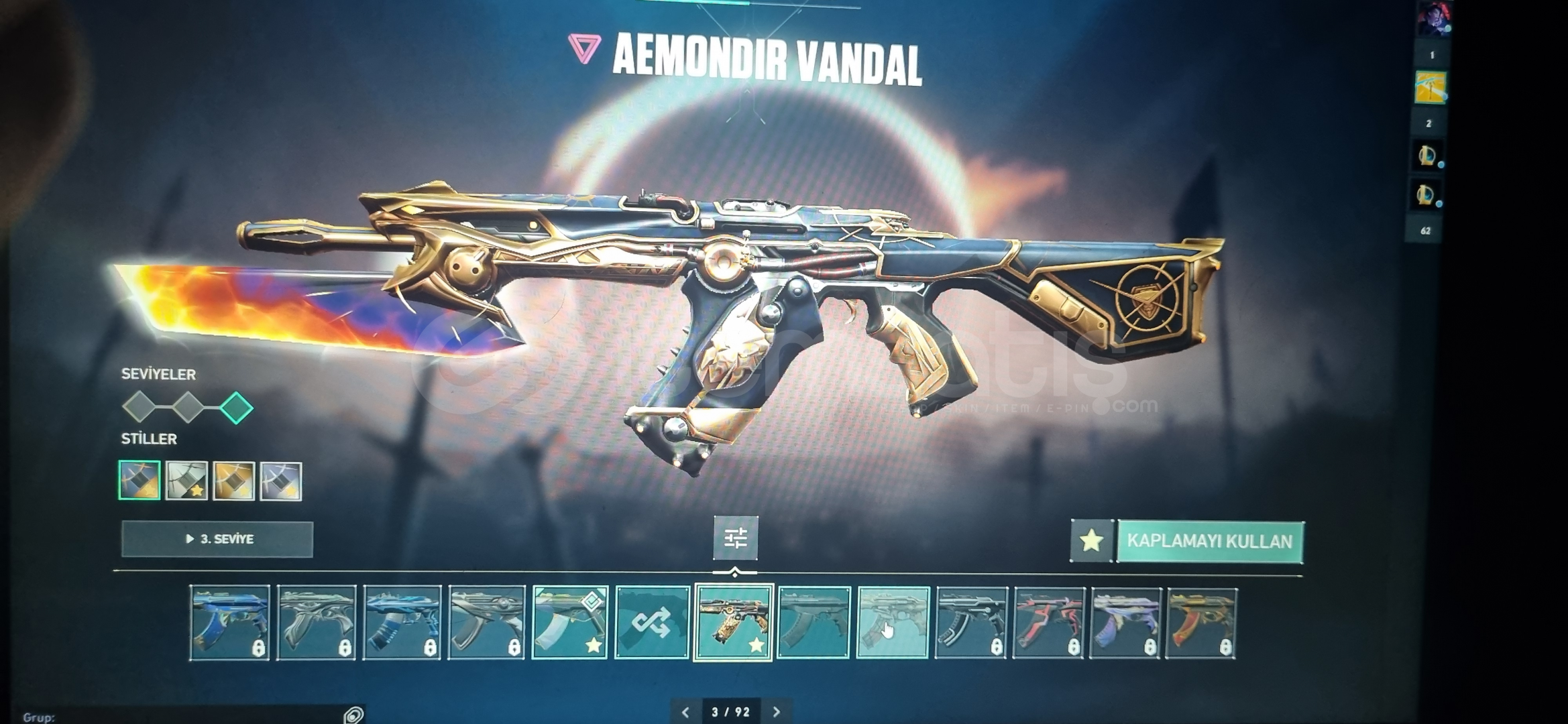 Hesap 77 leveldirAemondir vandalAsil vandalOni phantomHelezon hançerler Bulunmaktadır2 adet bp fullenmiştir10kdan fazla vp yüklenmiştir