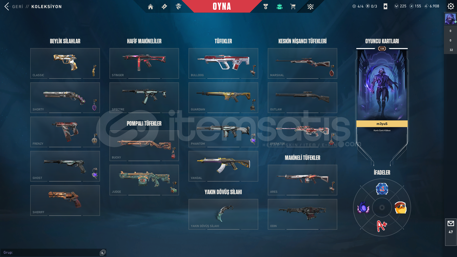 Hesabı ihtiyaç için satıyorum main silahların hepsinde skinler var