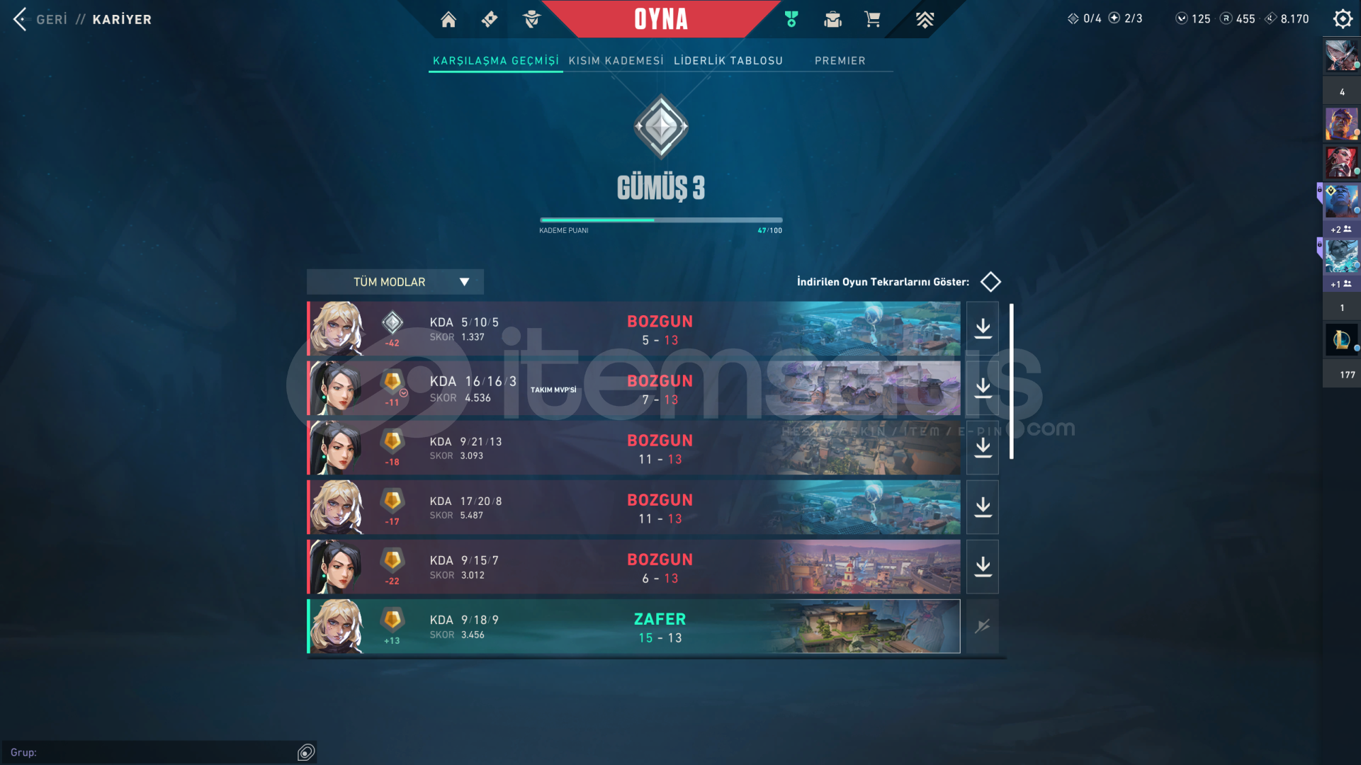 HESAPTA ASİL VANDAL ASİL KARAMBİT RGX PHANTOM VARDIR 1 ADET BP VARDIR HESABIN MMRI YÜKSEKTİR (arkadaşıma veriyordum bu hesaptan o oynuyordu rank ondan düşük)İLK MAİLİ YOKTUR MAİL DEĞİŞTİRİCEKSİNİZBU PARAYA BULAMAZSINIZ DİREK KULLANICIDAN TEMİZ HESAP AL MAİNLEBÜTÜN KARAKTERLER AÇIKTIR YENİ GELEN KARAKTER HARİÇpazarlık yapılır duru...
