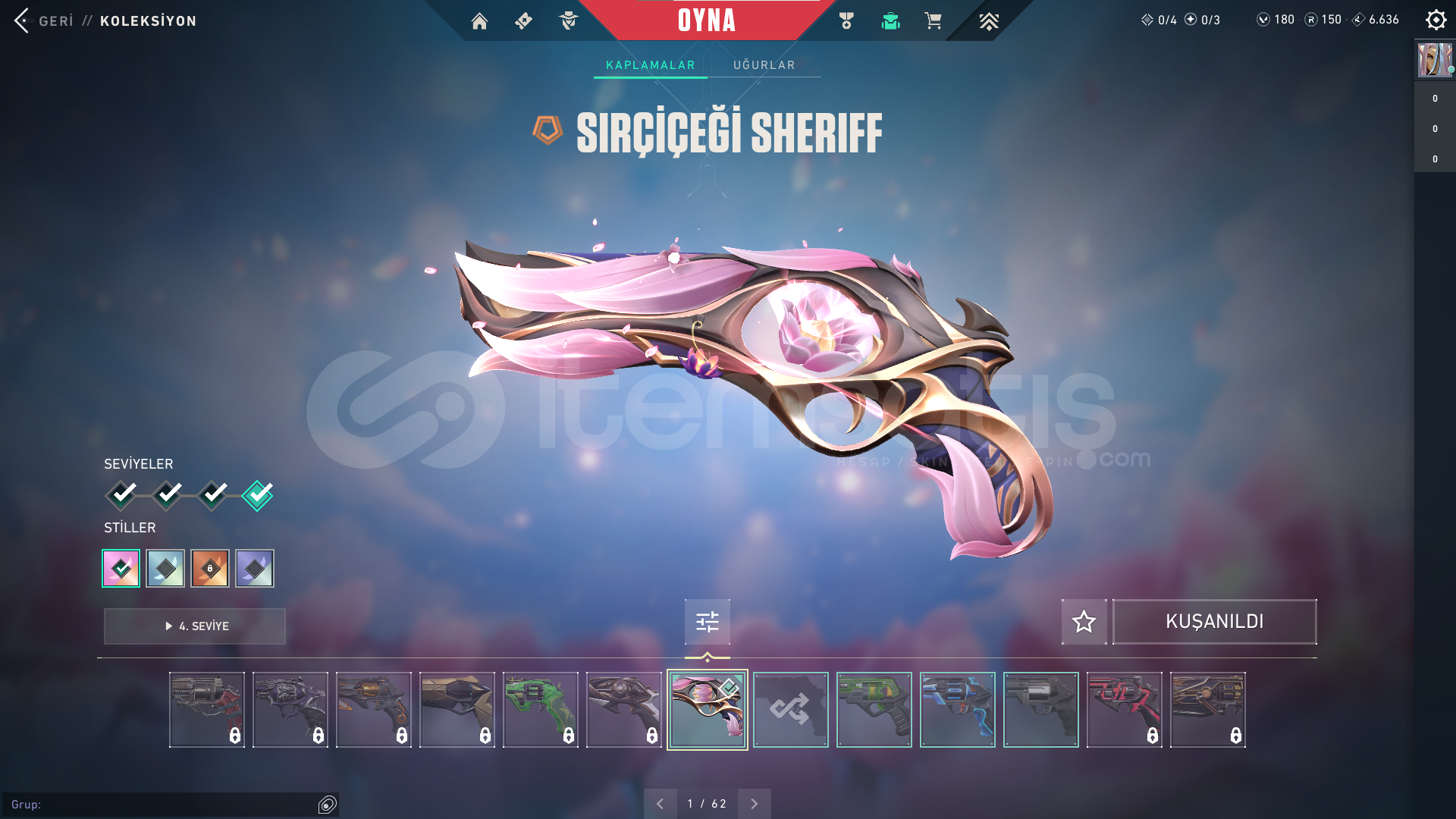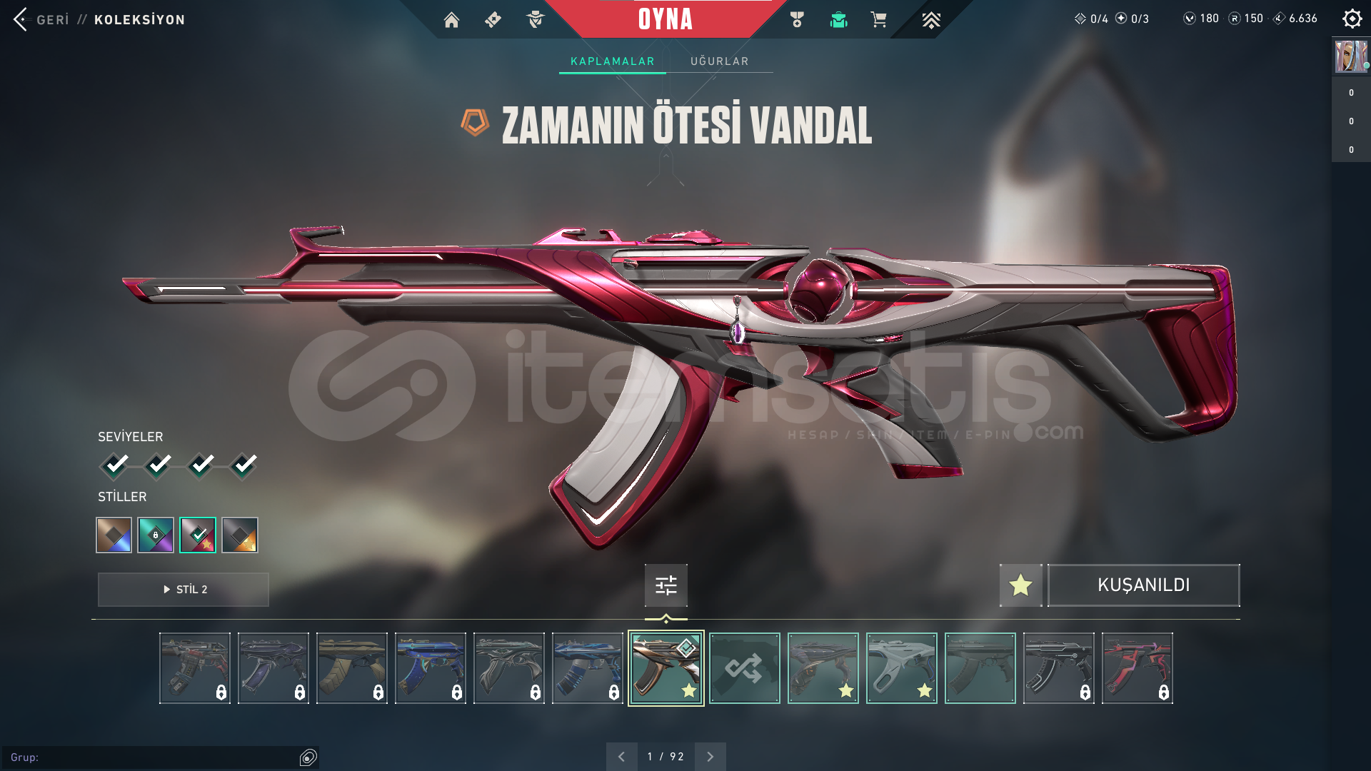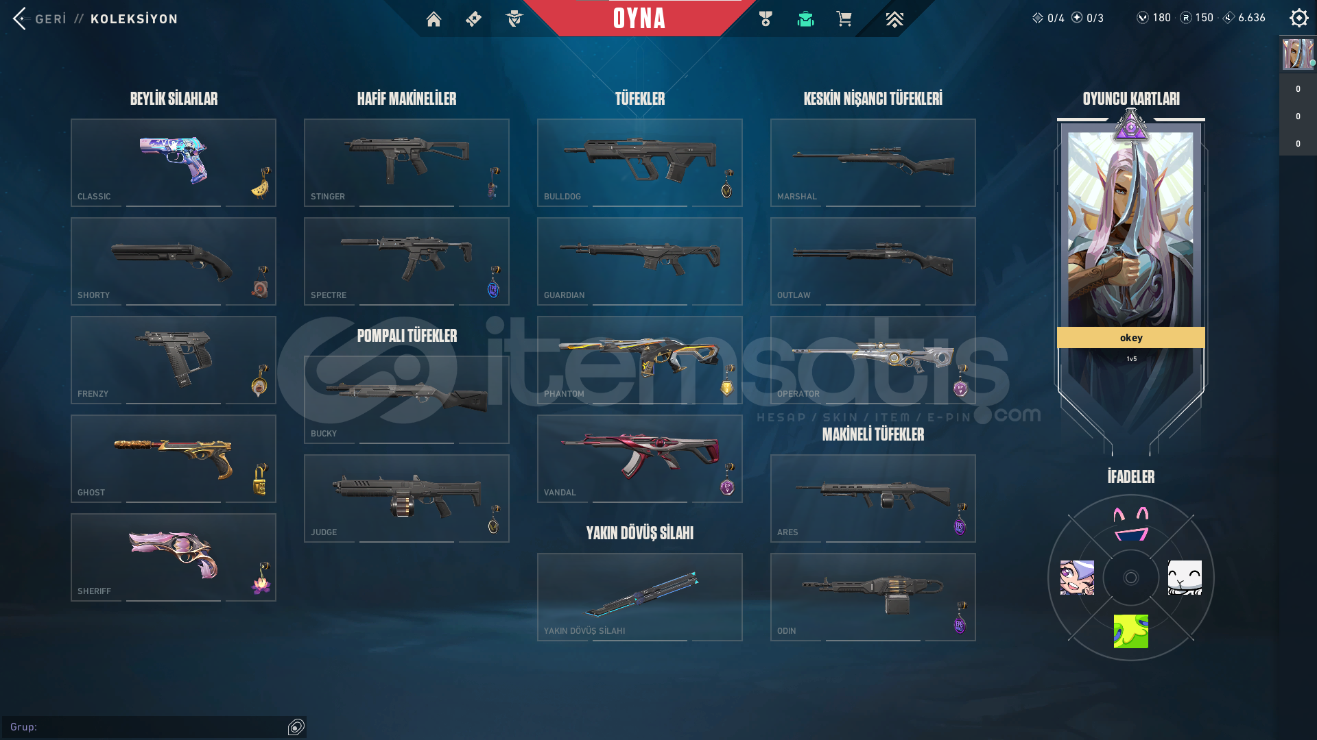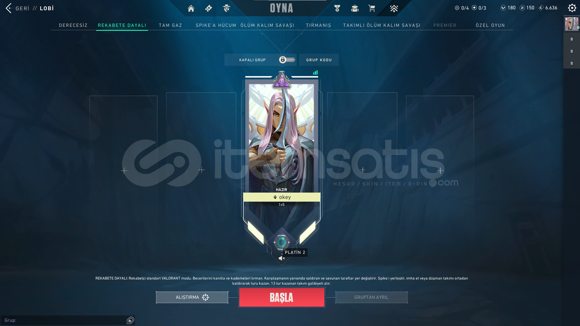 HESAP 151 SEVİYEGÜNCEL RANK: PLAT 2ÖNCEKİ RANK: DİA 3HESAPTA'Kİ SKİNLER; VANDAL : EJDER VANDAL - İYON VANDAL - ZAMANIN ÖTESİ VANDALPHANTOM : CHAMPİONS 2024 PHANTOMGHOST: CESUR YÜREK GHOSTSHERIFF : SIR ÇİÇEĞİ SHERIFFOPERATOR (OP) : KÖKEN OPERATÖRBIÇAK : RGX 11Z PRO KELEBEKHESAPTAKİ KULLANILABİLİR VP : 180 - RADYANİT PUANI : 150HESAPTAKİ TÜM KARAKTERLER AÇI...