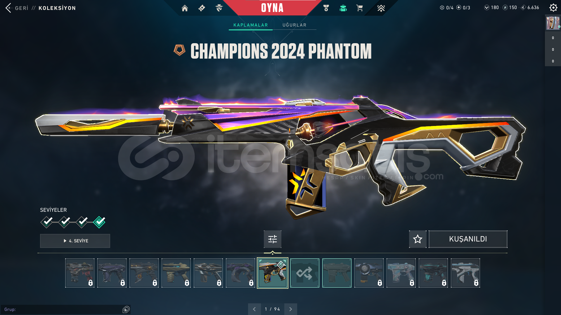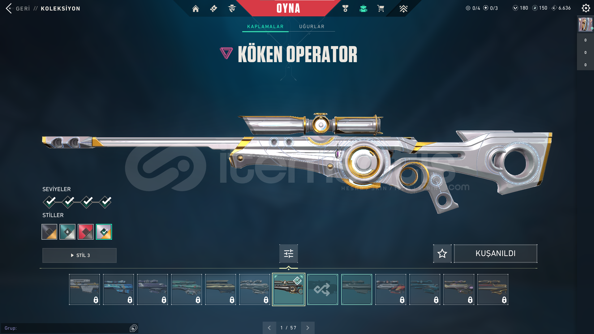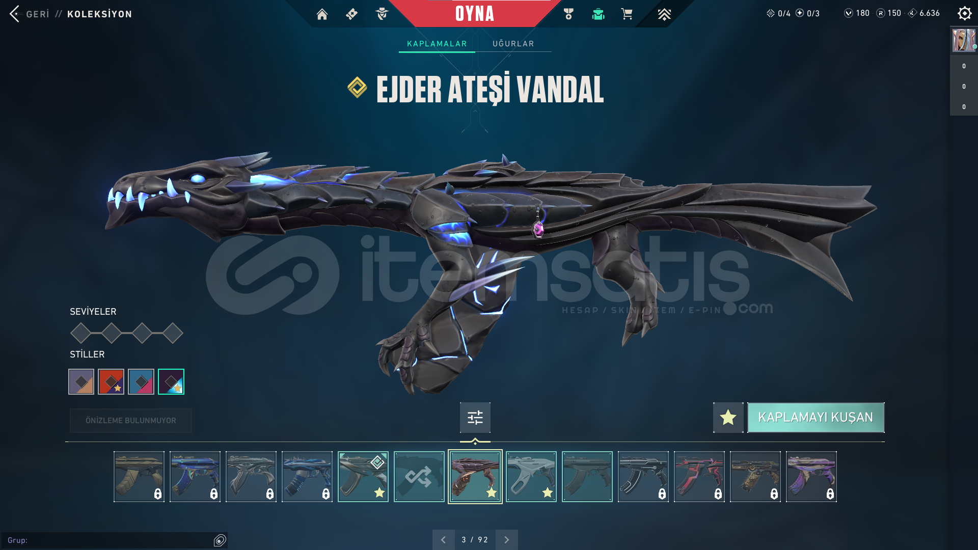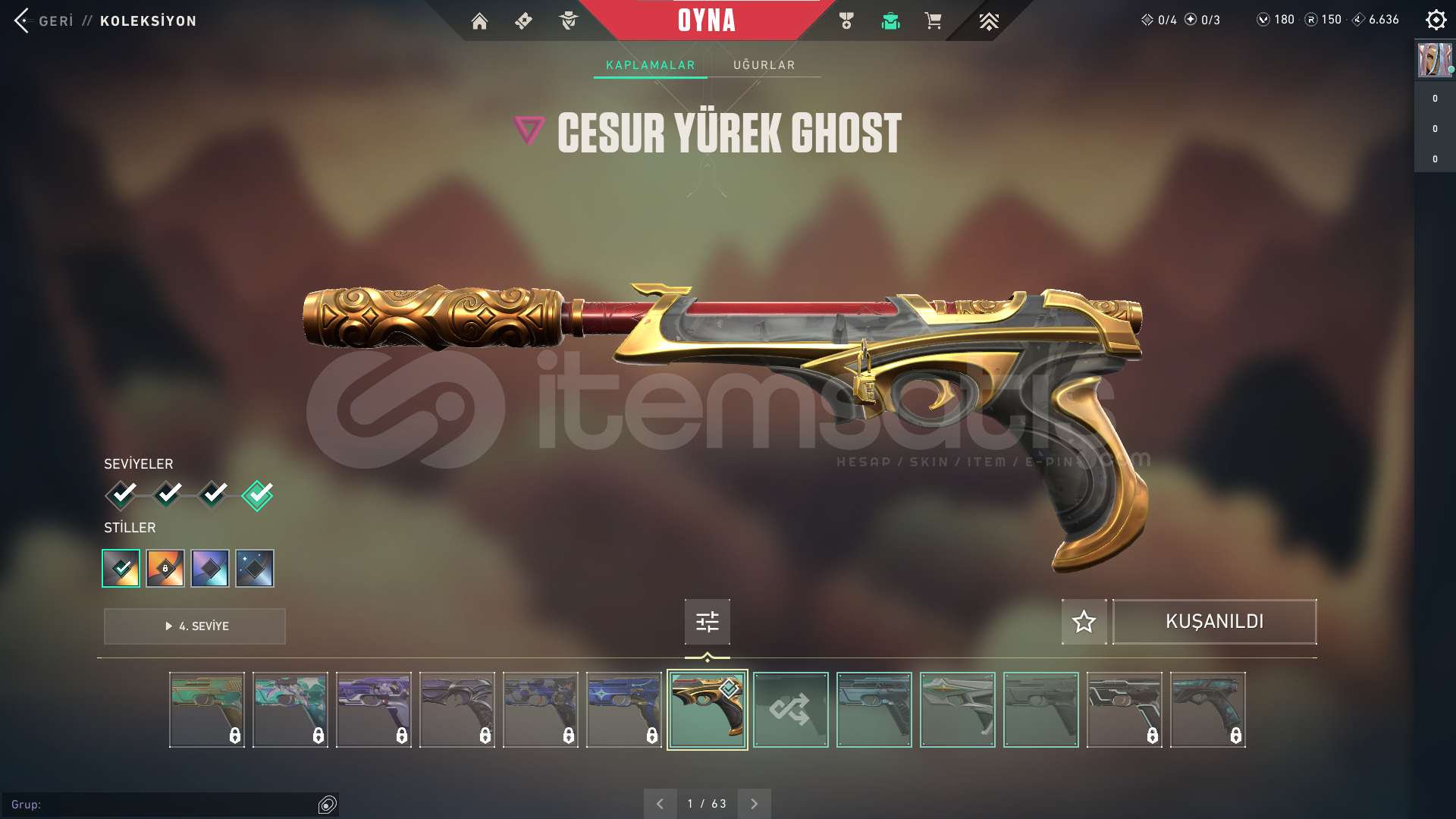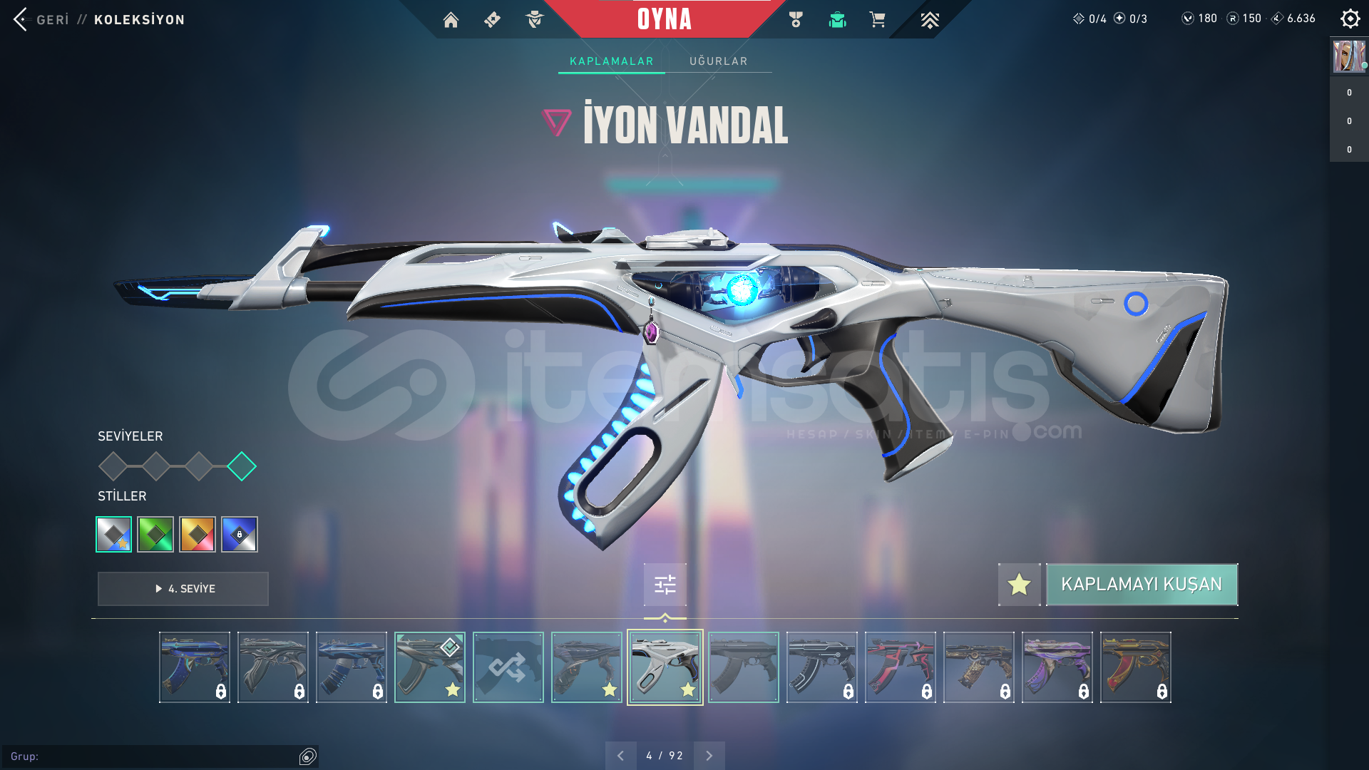 HESAP 151 SEVİYEGÜNCEL RANK: PLAT 2ÖNCEKİ RANK: DİA 3HESAPTA'Kİ SKİNLER; VANDAL : EJDER VANDAL - İYON VANDAL - ZAMANIN ÖTESİ VANDALPHANTOM : CHAMPİONS 2024 PHANTOMGHOST: CESUR YÜREK GHOSTSHERIFF : SIR ÇİÇEĞİ SHERIFFOPERATOR (OP) : KÖKEN OPERATÖRBIÇAK : RGX 11Z PRO KELEBEKHESAPTAKİ KULLANILABİLİR VP : 180 - RADYANİT PUANI : 150HESAPTAKİ TÜM KARAKTERLER AÇI...