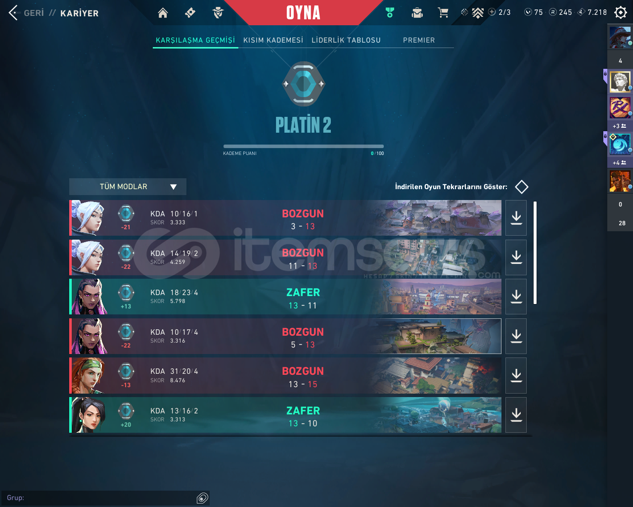 içinde yağmacı vandal var 2 3 tane de botlepass deseni var platin 2 hesap güzel alınır bir hesap