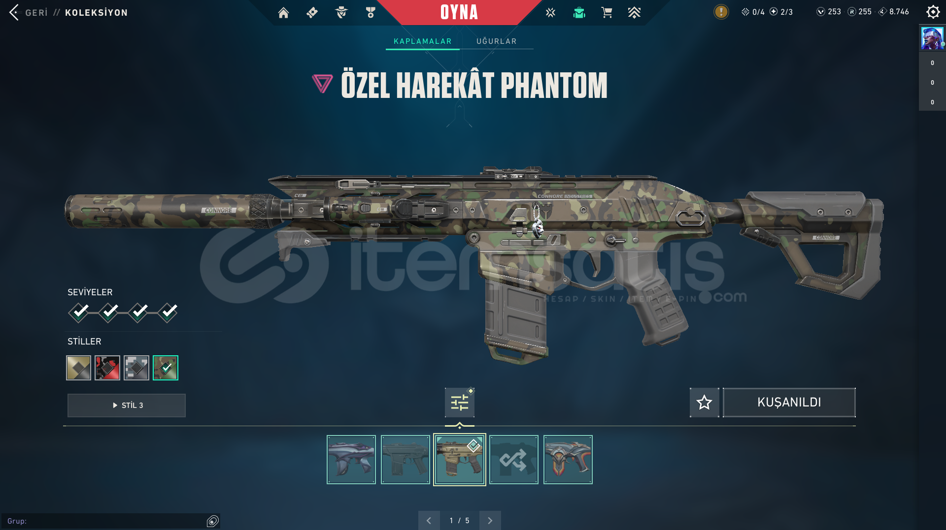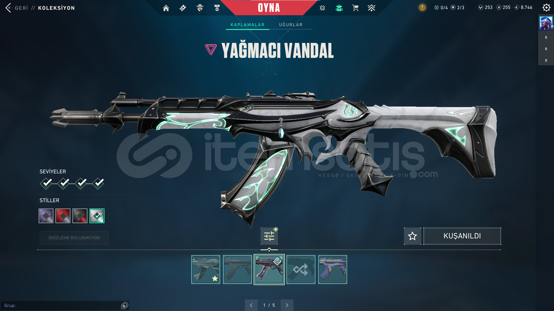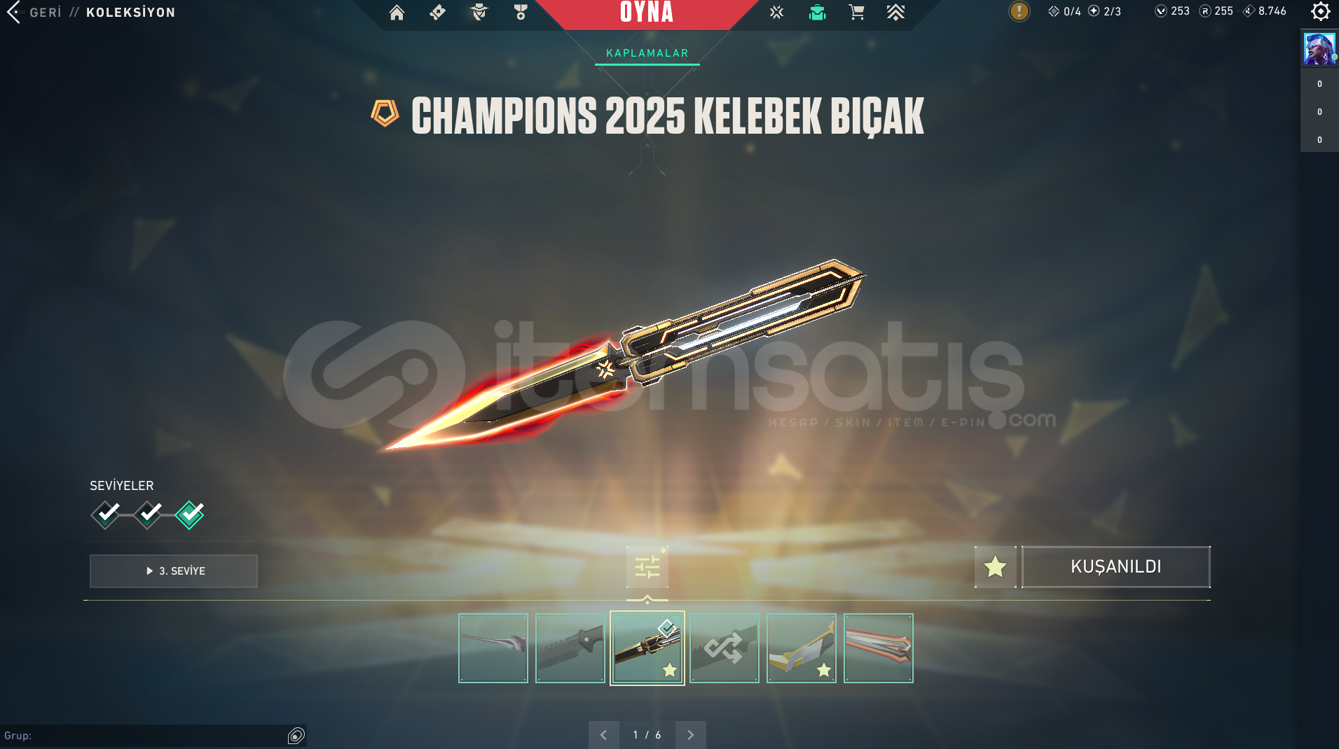 • Uyguna Kaliteli Hesap / Yağmacı Vandal / Özel Harekat Phantom / Champions 2025 Kelebek / Asil Karambit ve birçok battlepass skin