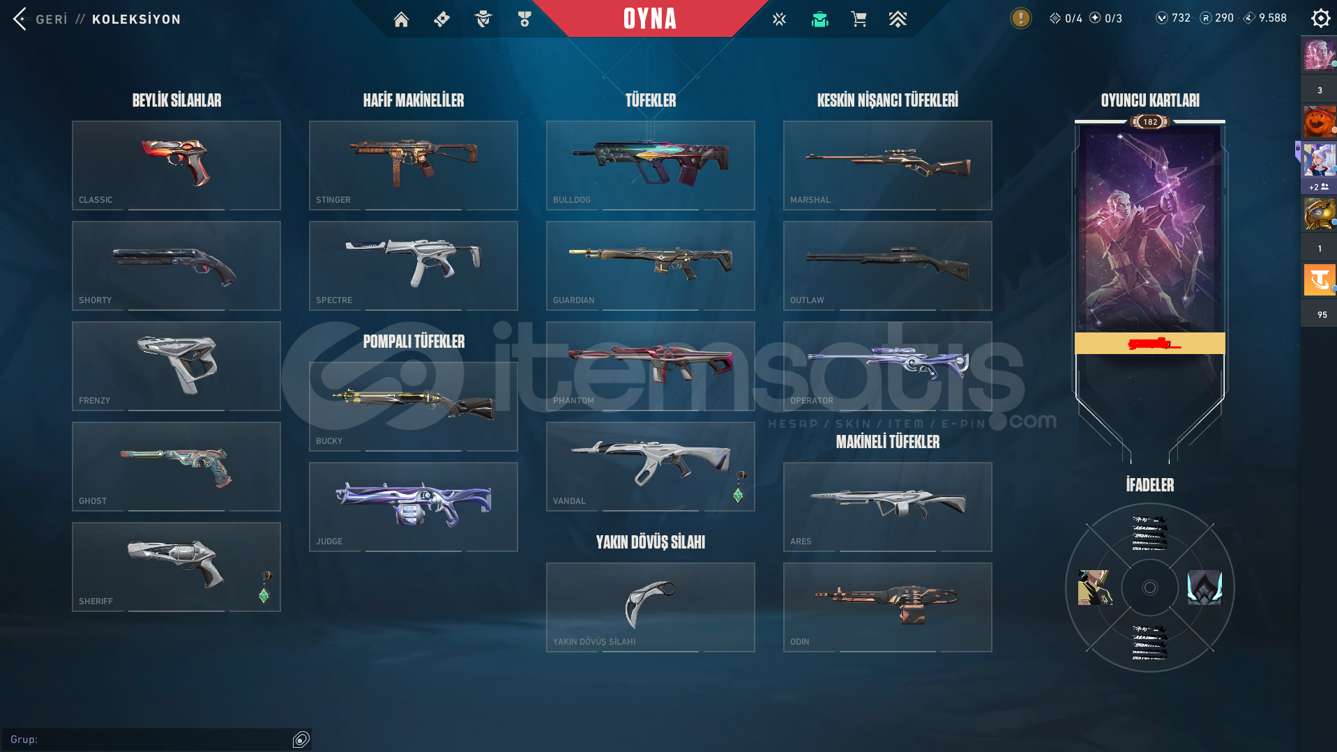 Sınav senem olduğu için bilgisayar açamıyorum, bu sebeple yadigar Valorant hesabımı satıyorum. Hesabın içindeki skinler;İYON 2.0 SETİİyon Karambit Gaia'nın GazabıRGX KatanaSemavi Yelpazeİyon Vandal Yağmacı VandalZamanın Ötesi PhantomFatih Phantom Yerçekimsel Uranyum Nöroateşleyici Buckyİyon Frenzyİyon Sherrifİyon Aresİyon SpectreBitirilmiş 1 Bat...