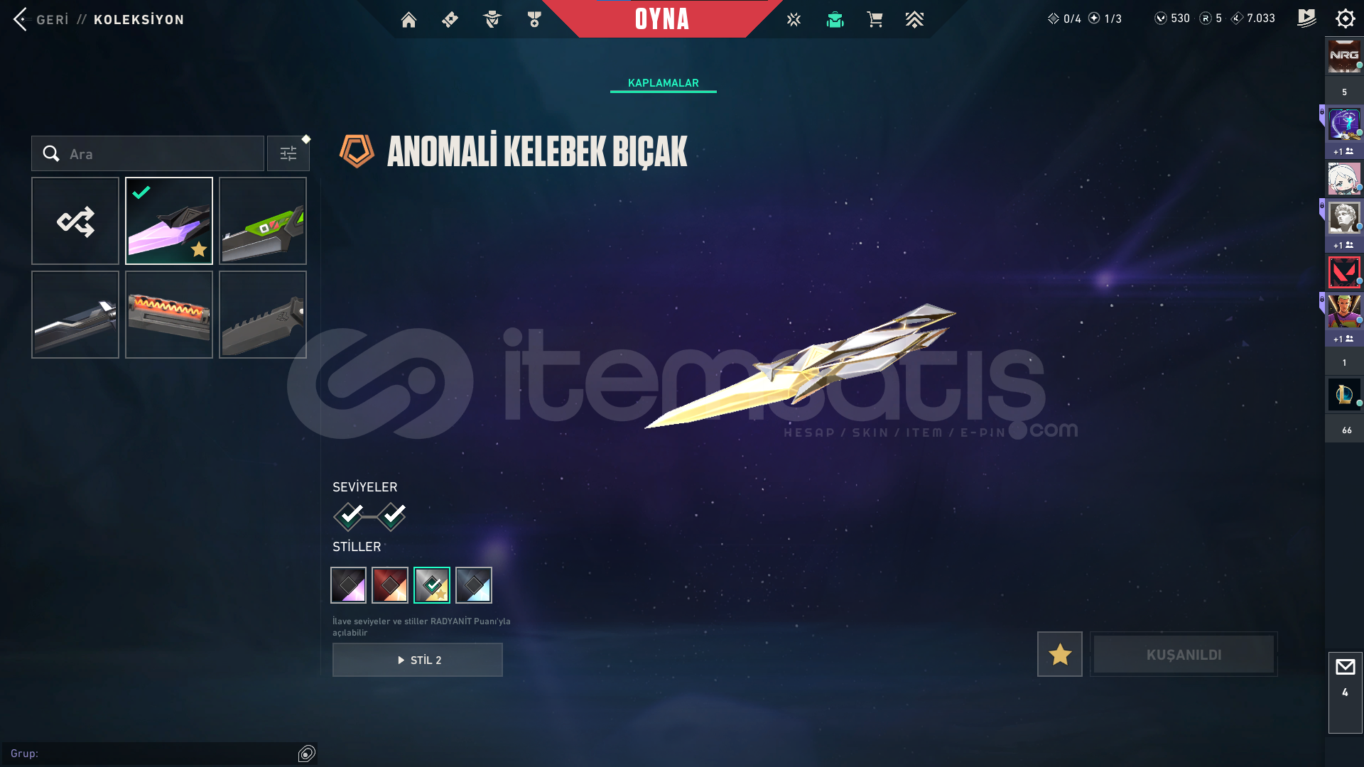 RANK PLAT 2 (MAX PLAT 3 GÖRDÜ)HESAPTA BULUNAN SKİNLERANOMALİ KELEBEK,ŞİMŞEK BIÇAKEVORİ VANDAL,GAİA VANDAL,FAZ KORUYUCU VANDAL,ANOMALİ VANDAL,KURONAMİ VANDAL,DOLMİRİN İNTİKAMI VANDALŞİMŞEK OUTLAWEJDER ATEŞİ OPERATÖRDELİPOP CLASSİC,VCT25 x NRG CLASSİCBLASTX PHANTOMKURONAMI SHERIFF,ZAMANIN ÖTESİ SHERIFFFATİH GHOST,ANOMALİ GHOSTSAVAŞ BİLET&...