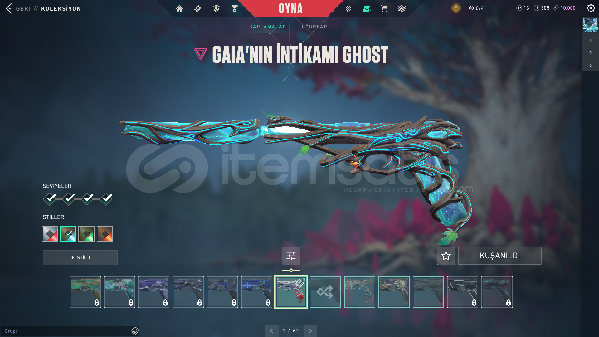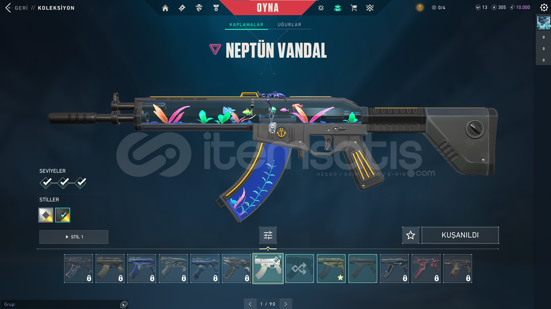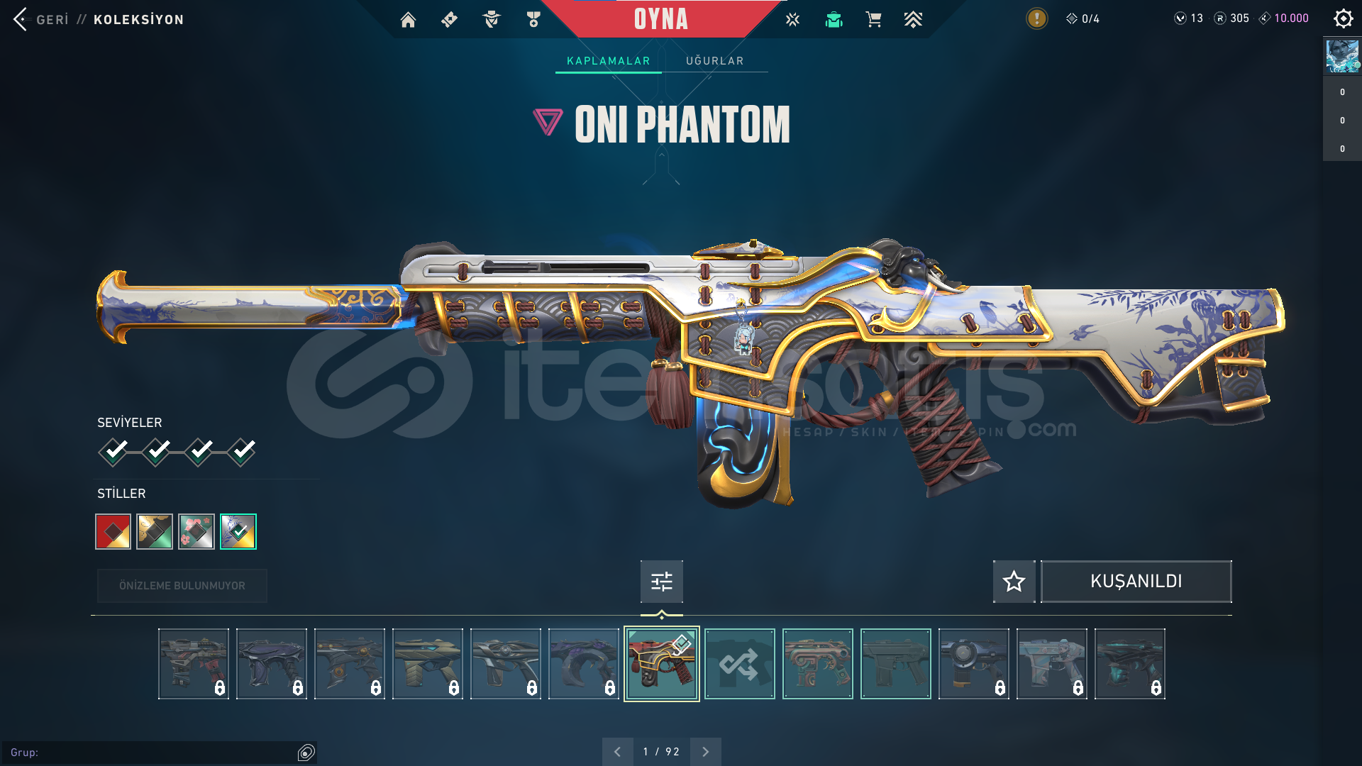 • Uyguna Kaliteli Hesap / Neptün Vandal / Oni Phantom / Semavi Yelpaze / Yağmacı Operator / İyon Sheriff / Gaia Ghost / ve birçok battlepass mevcuttur.