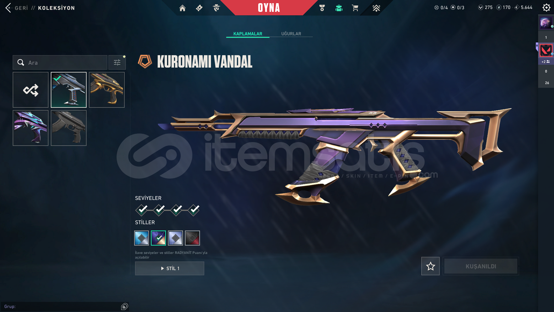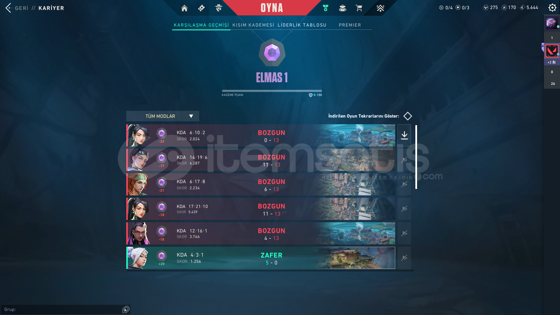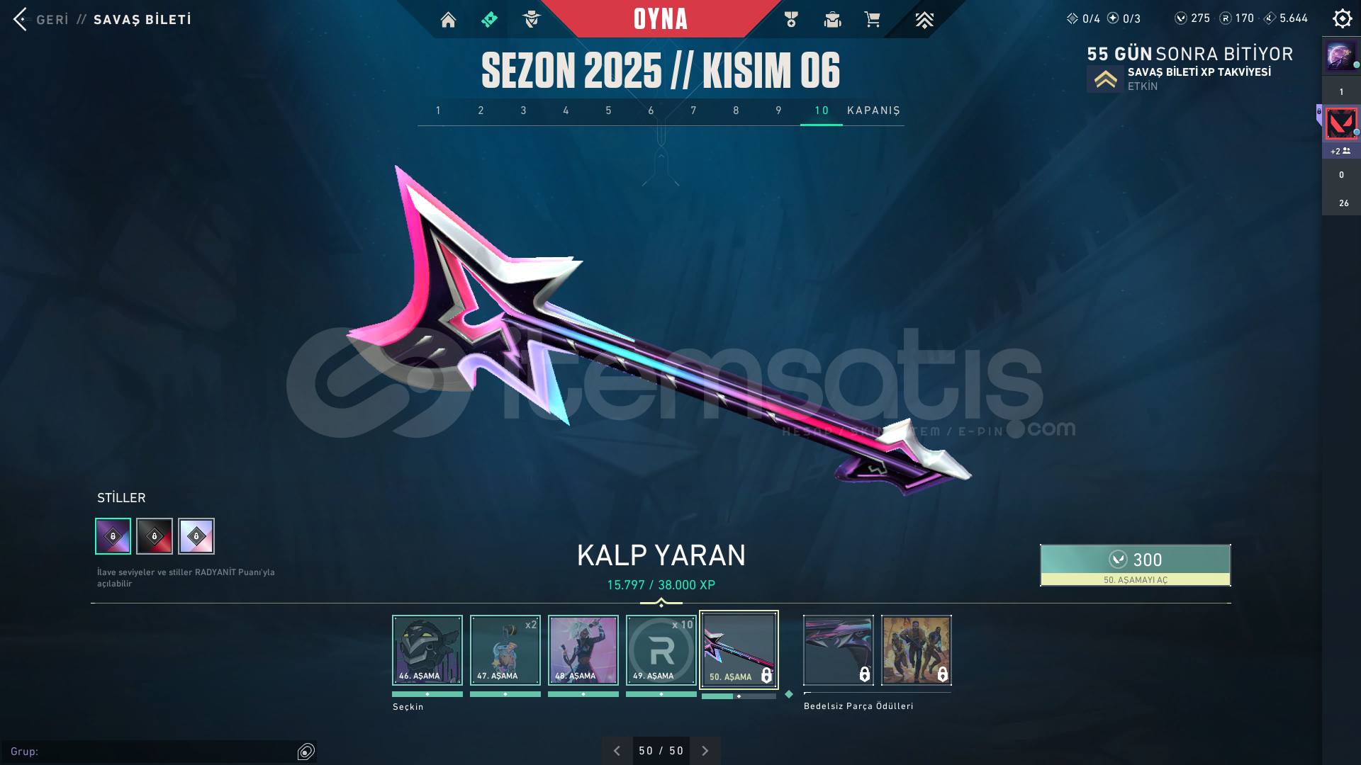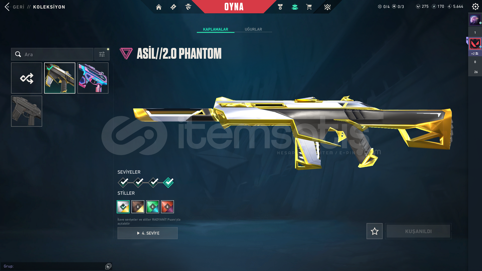Merhaba arkadaşlar valorantı bıraktığım için hesabımı satıyorum hesabımda olan skinler şunlardır; seri tetik balta + şuanki botlepass bıçağı, vandalda ise kuronomi vandal + cesur yürek vandal + şuanki botlepass vandalı, phantomda asil phantom vardır hesab bu kadar dia 1 temiz hesap hiç bir banı yoktur,hesaba 2730 lira yatırmışım zaten