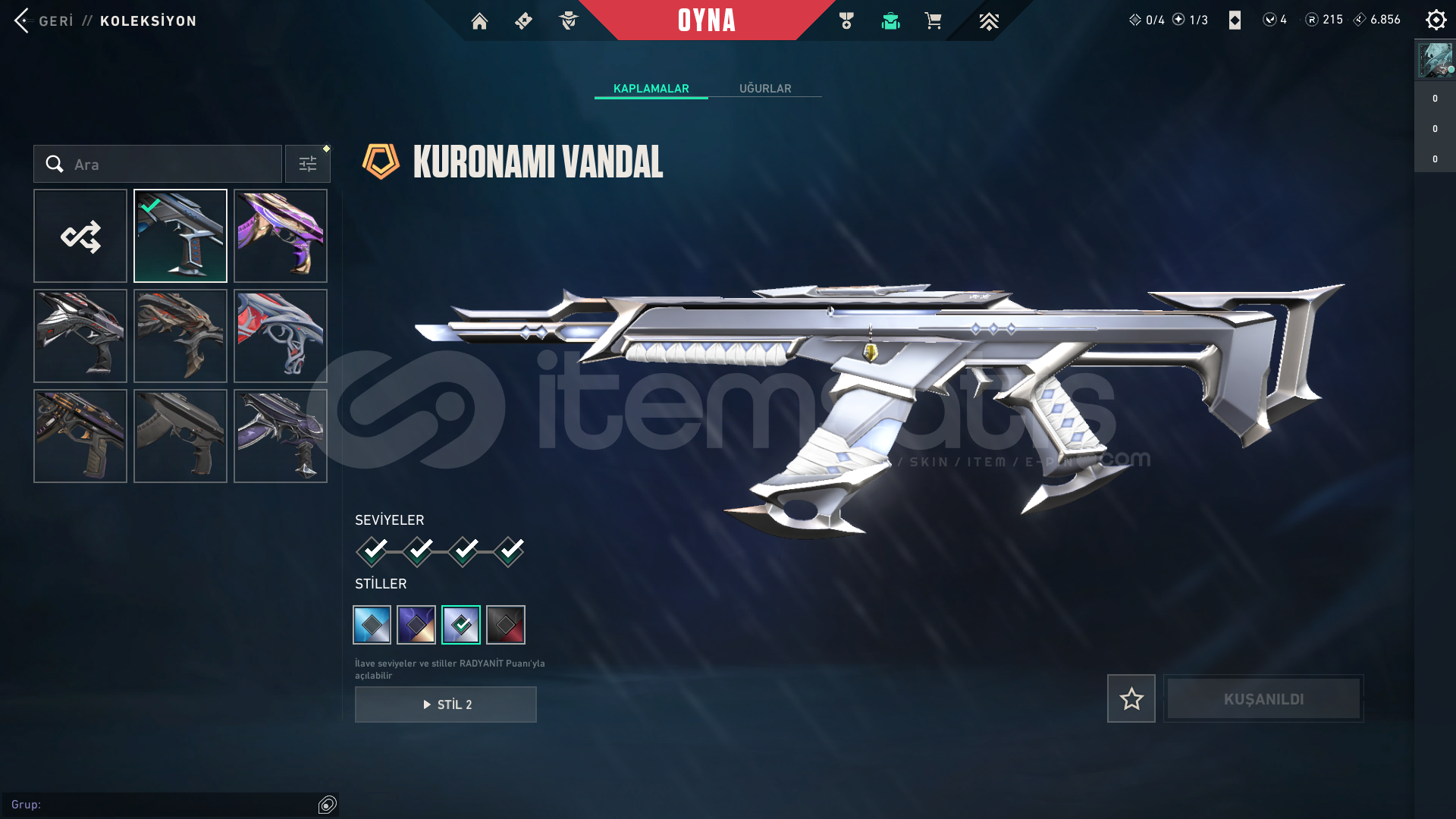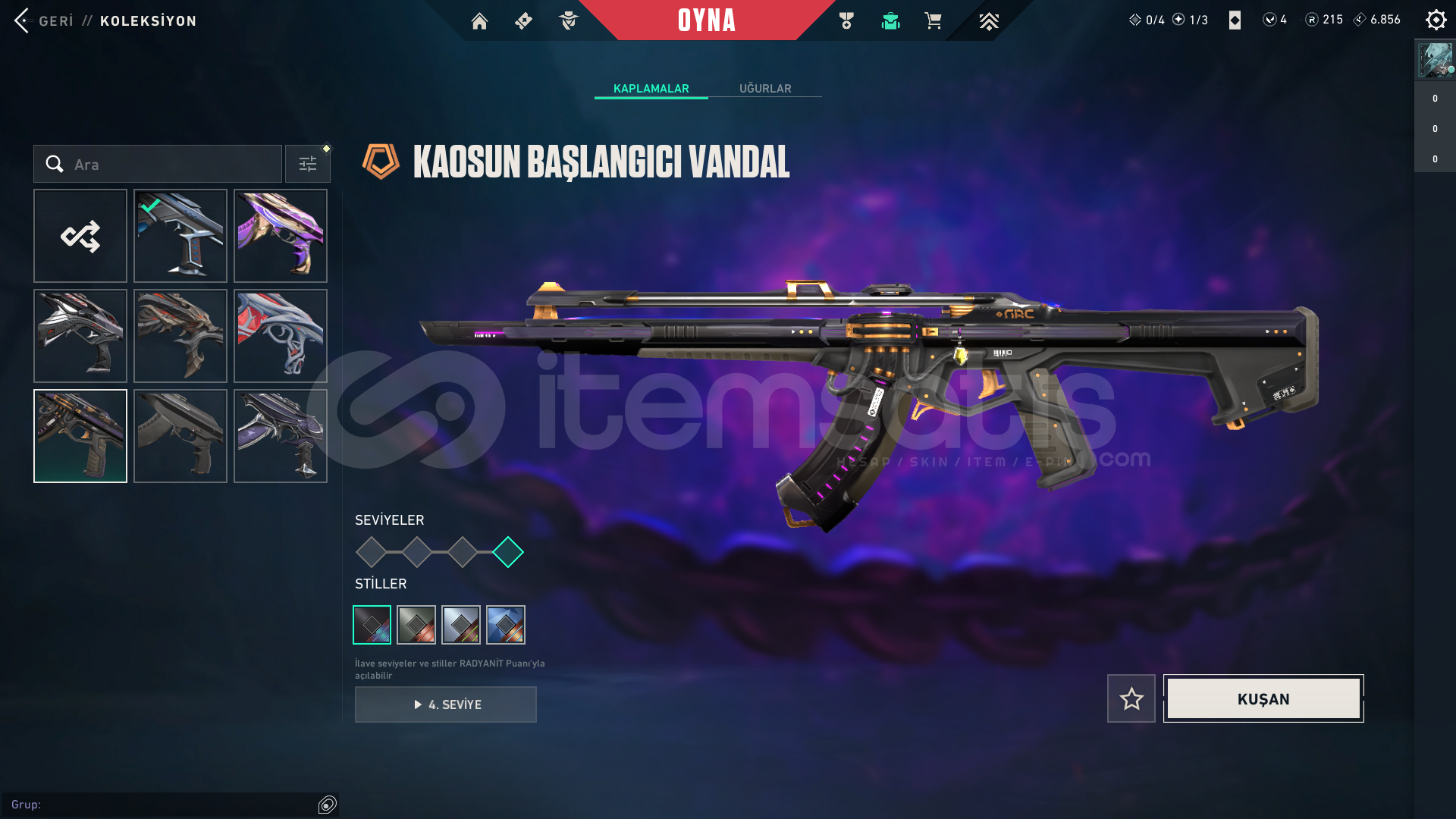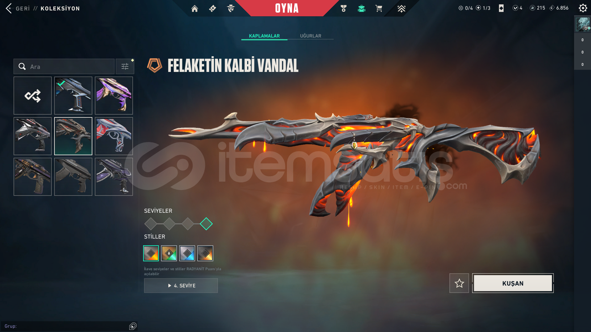 → Valorant bıraktığımdan dolayı satışa çıkarılmıştır.→ İstediğiniz maile geçişi yapılacaktır.→ Bağlantılar kaldırılacaktır.→ Sunucu Türkiye→ Yadigar Taşı Hançerleri→ Kuronami Vandal→ Kaos'un Başlangıcı Vandal→ Gaia'nın İntikamı Vandal→ Yağmacı Vandal→ Felaketin Ka...
