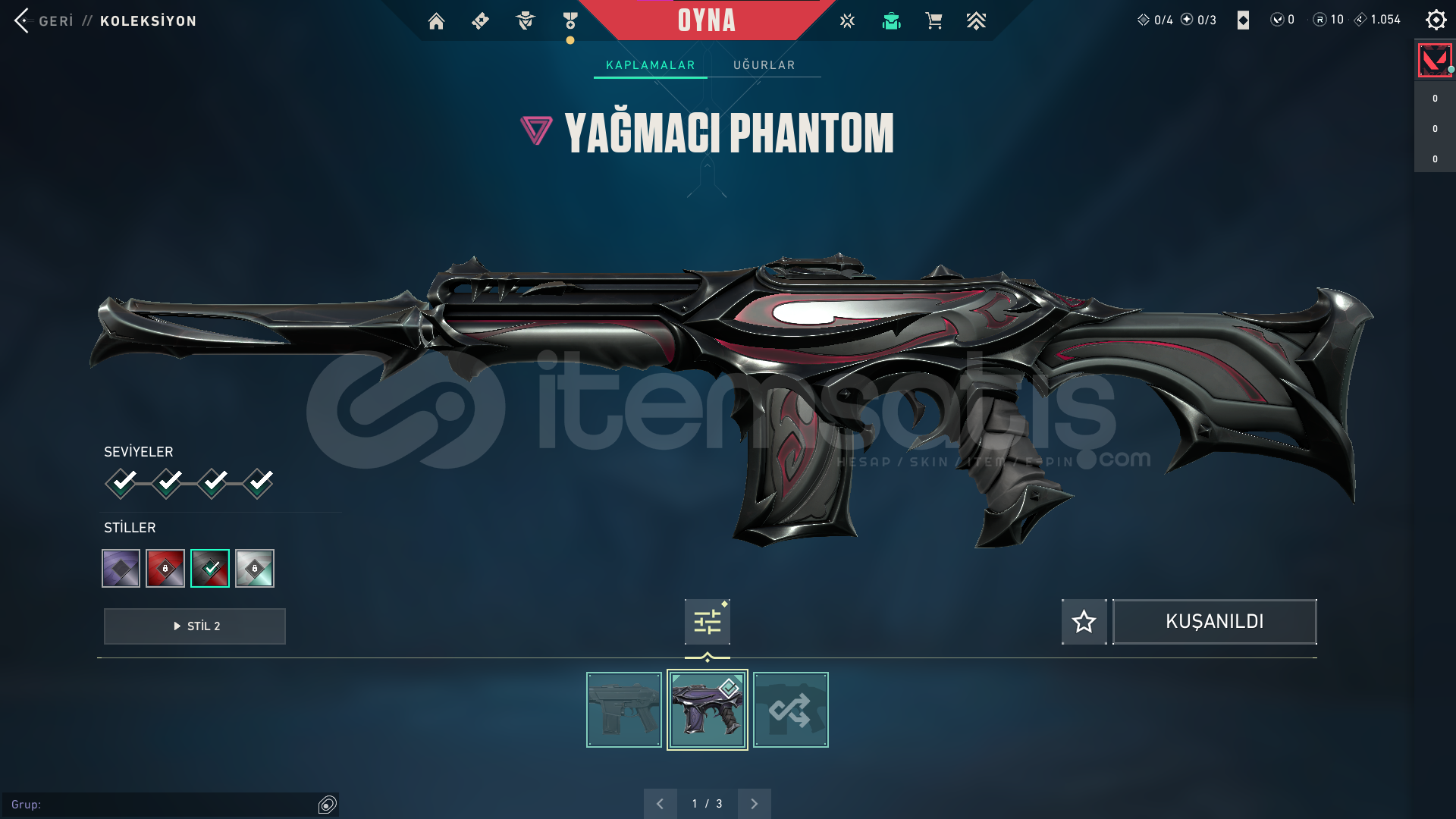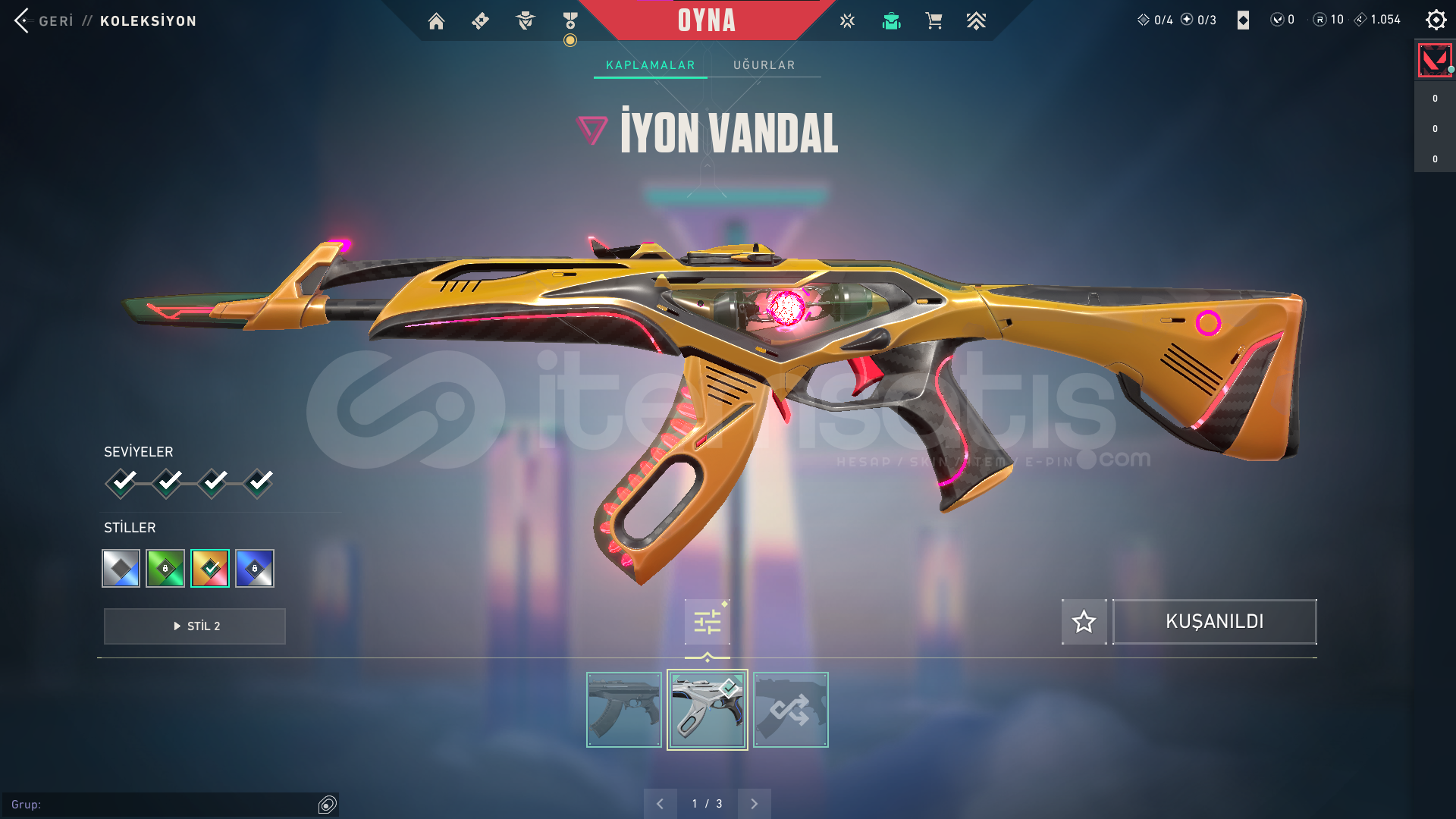 ⭐ Hesapta Uzaylı Avcısı Bıçağı , İyon Vandal , Yağmacı Phantom , Sakura Classic ve Muharebe Operator skinleri bulunmaktadır.