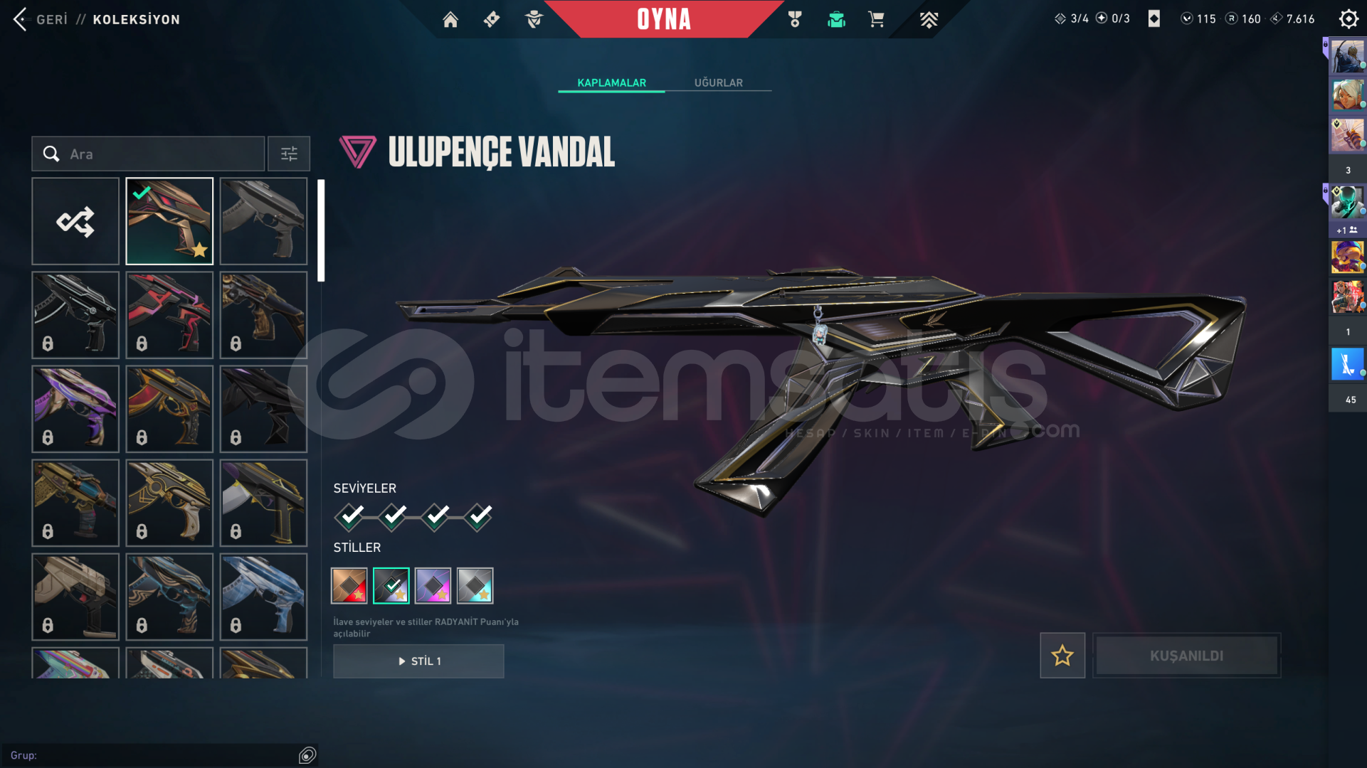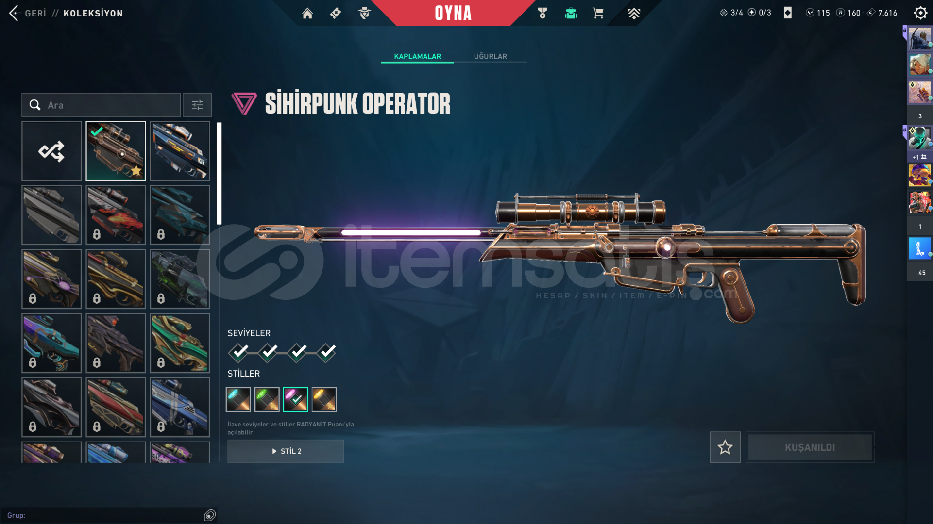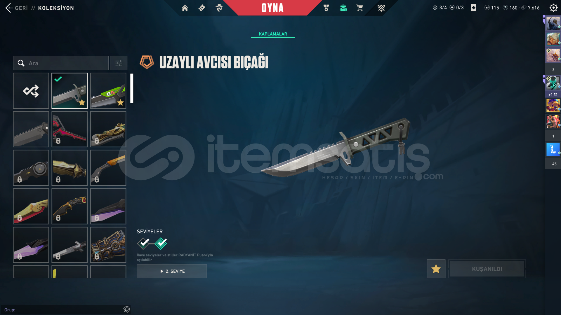 🔪 Uzaylı Avcısı Bıçak🔫 Ulu Pençe Vandal🏆 Champions 2024 Phantom🎯 Sihirpunk Operatör🎟️ 1 Adet FULL Battle Pass💎 F/P odaklı,aktif kullanıma hazır bir hesaptır. Ciddi alıcılar yazsın.