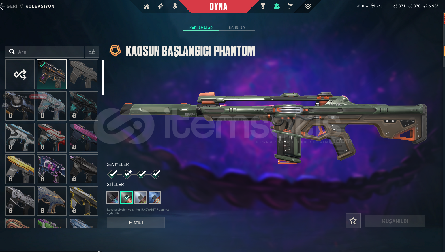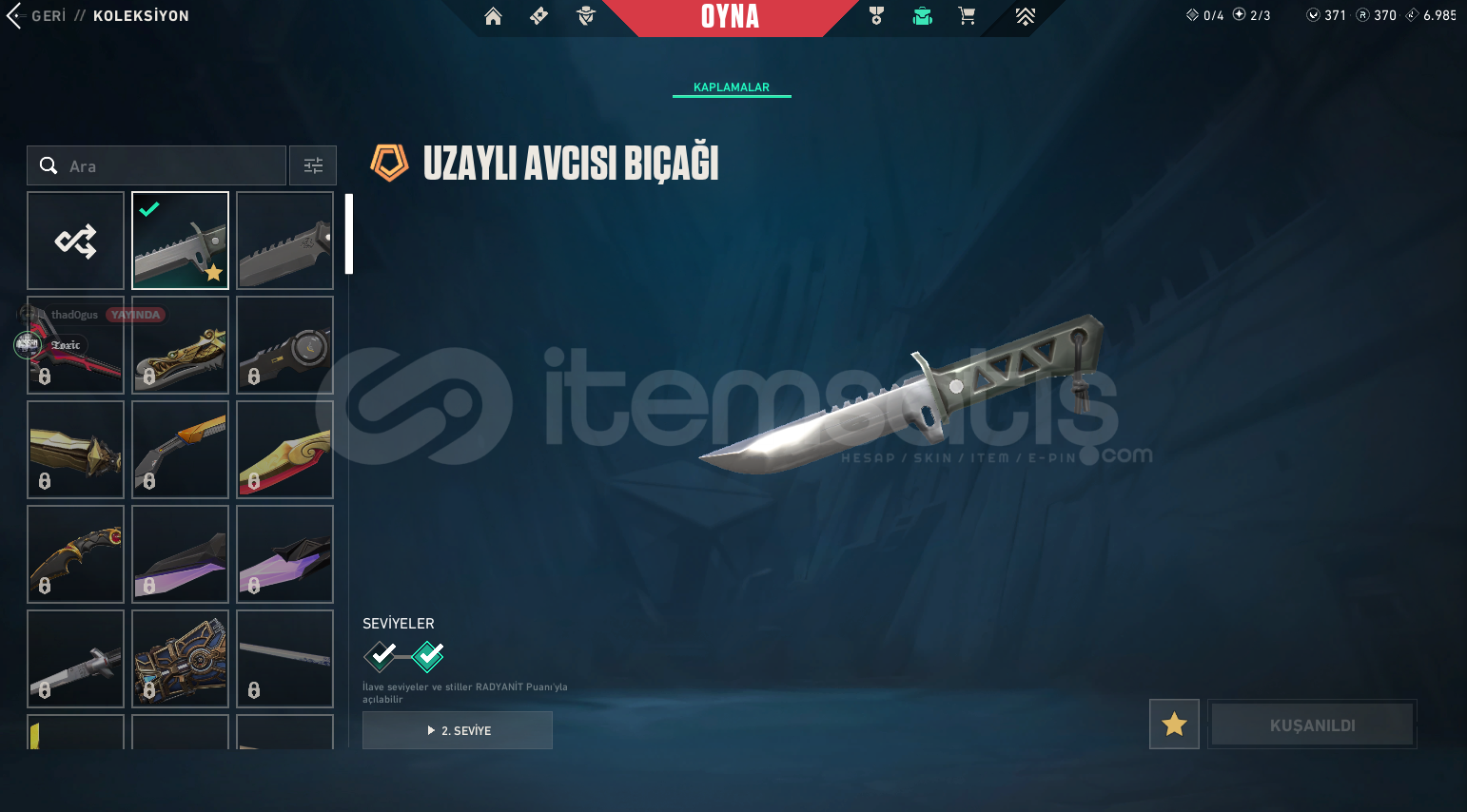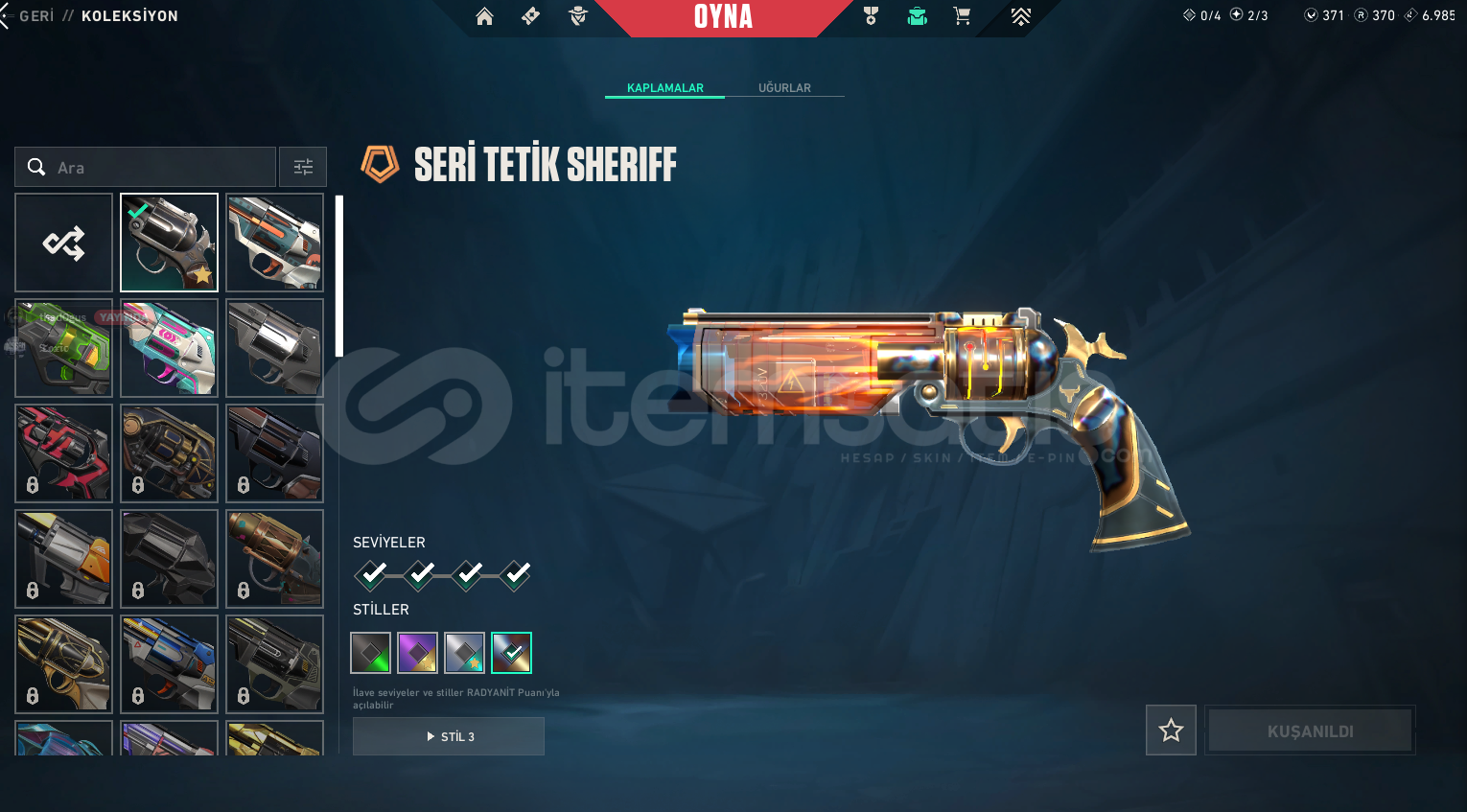 HESAP GÜVENİLİRDİR ARKADAŞIN HESABI İLK MAİL BİZDE GERİ ÇEKME GİBİ Bİ DURUM OLMİCAĞINA GARANTİ VERİRİZ İÇİNDEKİLER:UZAYLI AVCISI BIÇAKYAĞMACI VANDAL KAOS PHANTOMSERİ TETİK SHERİFFPAZARLIK OLMASI ÇOK ZOR.