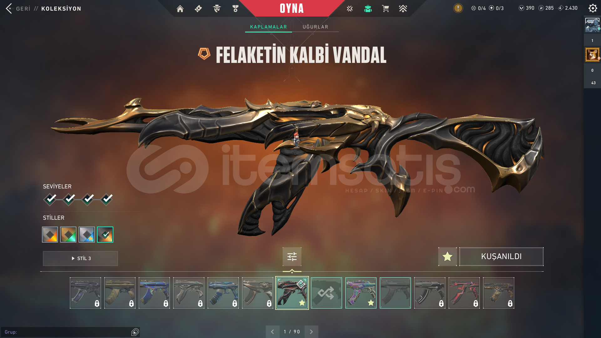 Valo Rank-Geçen Sezon Gold Şuan Derecesiz-222 LevelSkinler:Yağmacı karambit-Tüm renklerUzaylı avcısı bıçağıFelaketin Kalbi Vandal-Tüm renklerDelipop Vandal-Tüm renklerProtokol-781A phantom-Tüm renklerCanavarlar şehri sheriff-Tüm renklerKartuş sheriff-Gri ve yeşilOyun bitti sheriffRenk deryası sheriff-açık mavi ve kapalı maviEcelin ısırığı ghost-kı...