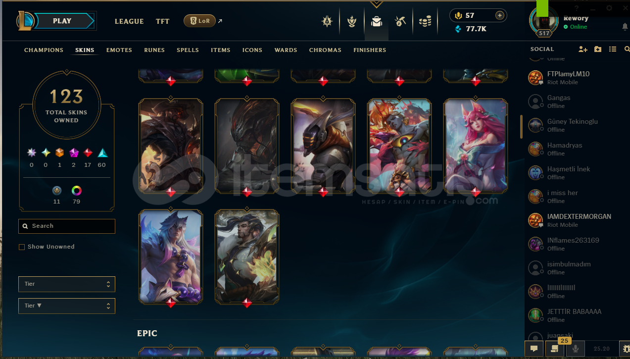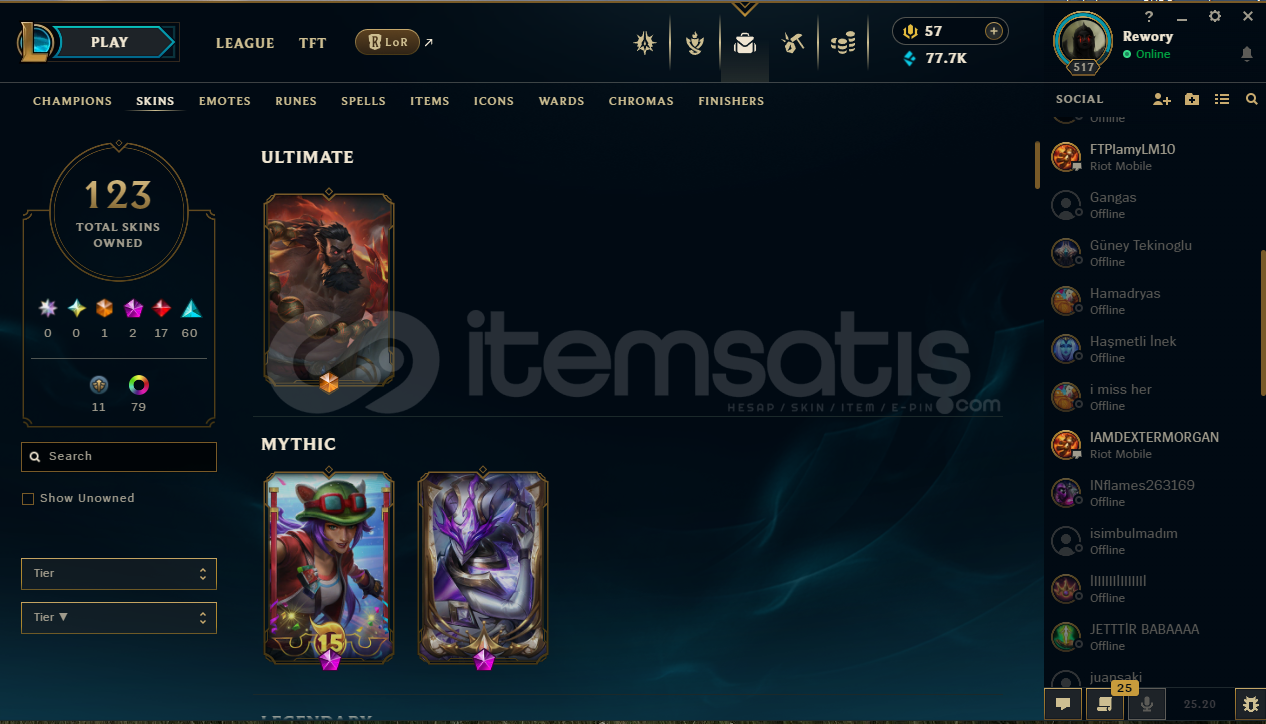 Lol Rank-Geçen Sezon tek çift-plat - Şimdiki sezon-tek çift-gold II- 517 Level