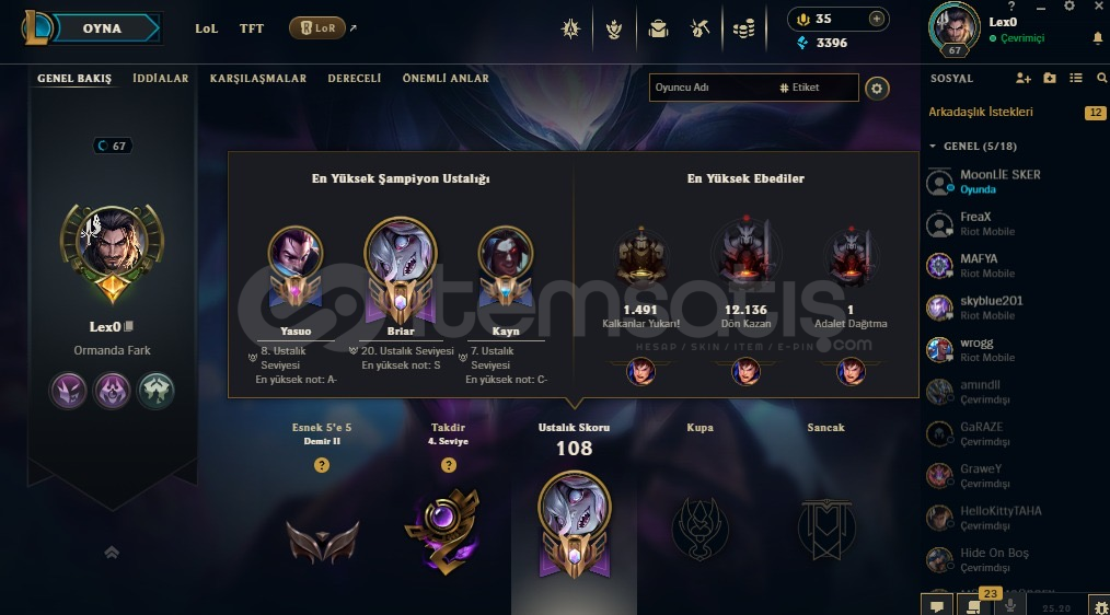 Hesabların ikiside az çöl doludur.Başlangıç olarak güzeldir.Valorsnt hesabında sakura vandal iyon vandal 1 bp fullenmiş rankı da gold3 .Lol hesabında 12 kostüm bardır.