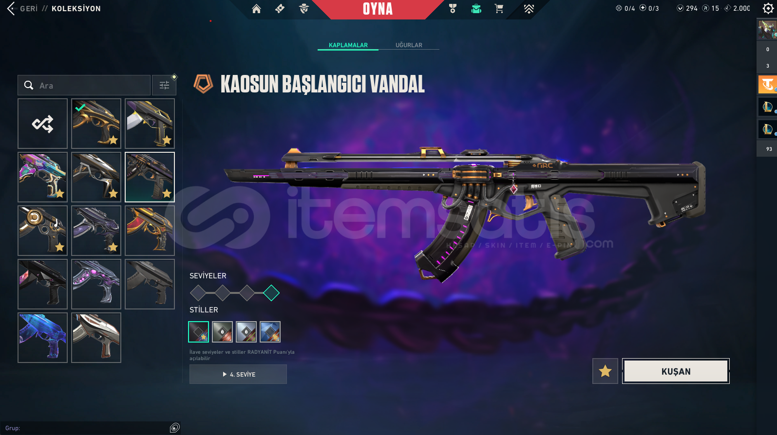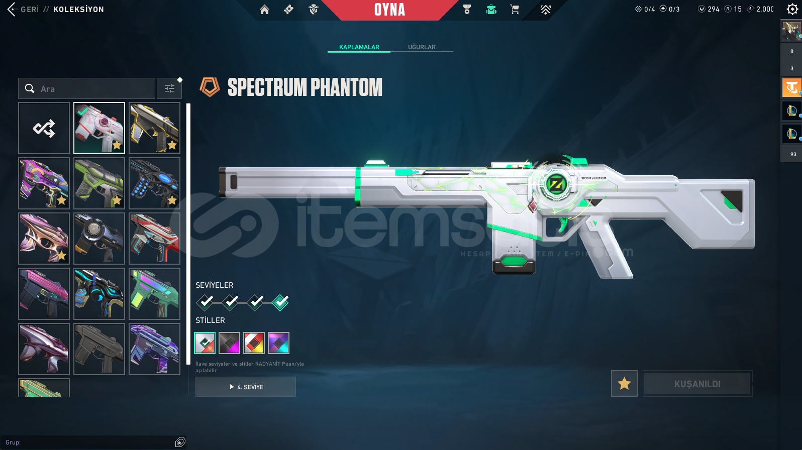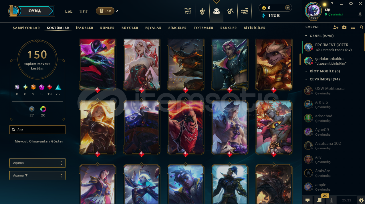 VALORANT RANKI: ÖLÜMSÜZLÜK(İMMORTAL) 1159 SKİN (ALTIN AFET BIÇAK DAHİL)320 UĞURLUK233 SPREY214 KART138 UNVANLOL:150 KOSTÜM171 ŞAMPİYON(HEPSİ AÇIK)20 RENK PAKETİ213 PROFİL İKONU34 TOTEM165 İFADE112K MAVİ ÖZTAKDİR SEVİYESİ 5ESNEK: GÜMÜŞ 2 | TEK ÇİFT: ALTIN 4 | TFT: ALTIN 3 | MUHTEŞEM İKİLİ: BRONZ 2YENİ TFT KARTI ALINDI VE FULLEND...