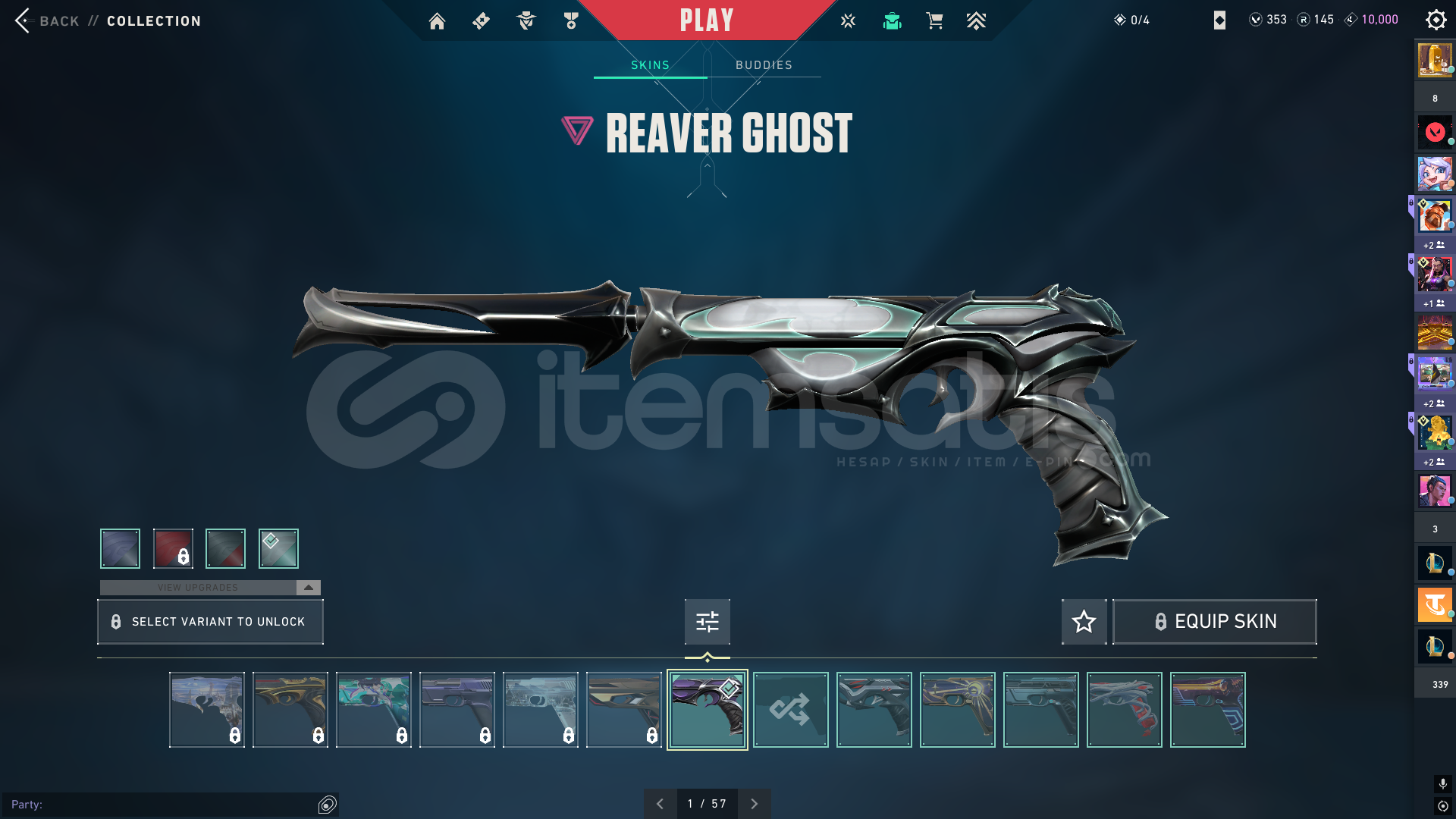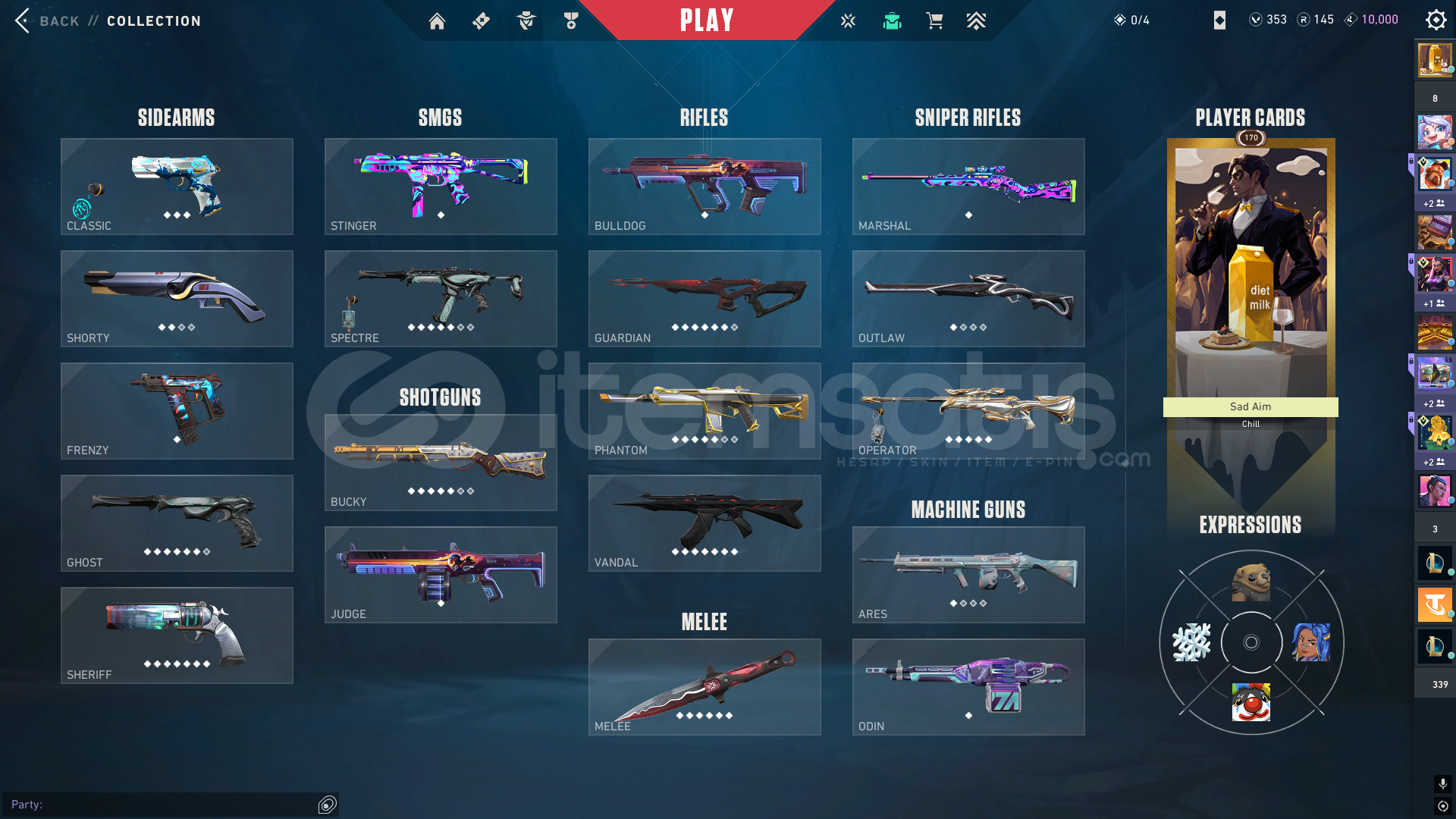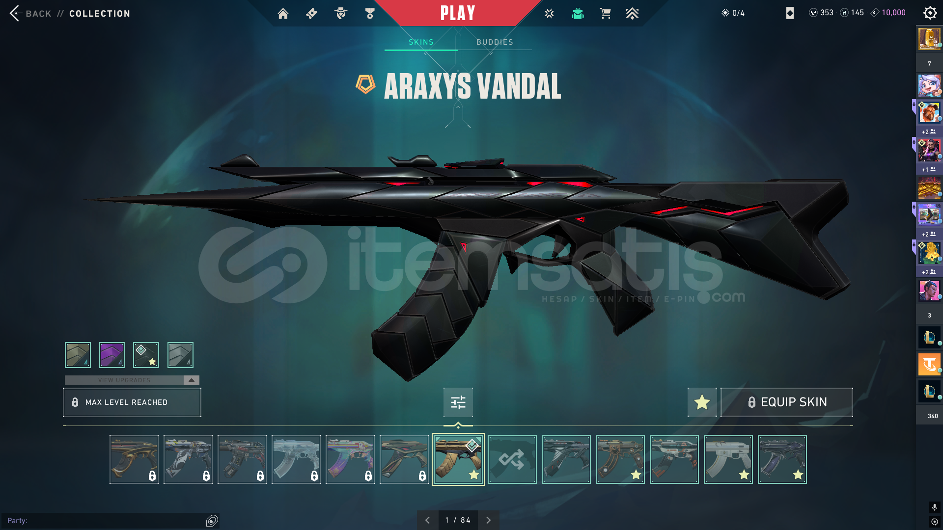 VANDAL(4): Yıldız Belası, Sihirpunk, Neptun, YağmacıBIÇAK(2): VCT Bıçak, Karaborsa KelebekPHANTOM(3): Fatih, Anomali, Asil 2.0SHERRİFF(1): Seri Tetik, SihirpunkOPERATOR(1): Yitik, Jett OPGUARDİAN(1): CyraxBUCKY(1): ONİGHOST(2): Yağmacı, GaiaSPECTRE(1): YağmacıCLASSİC(1): VCT25 X L...