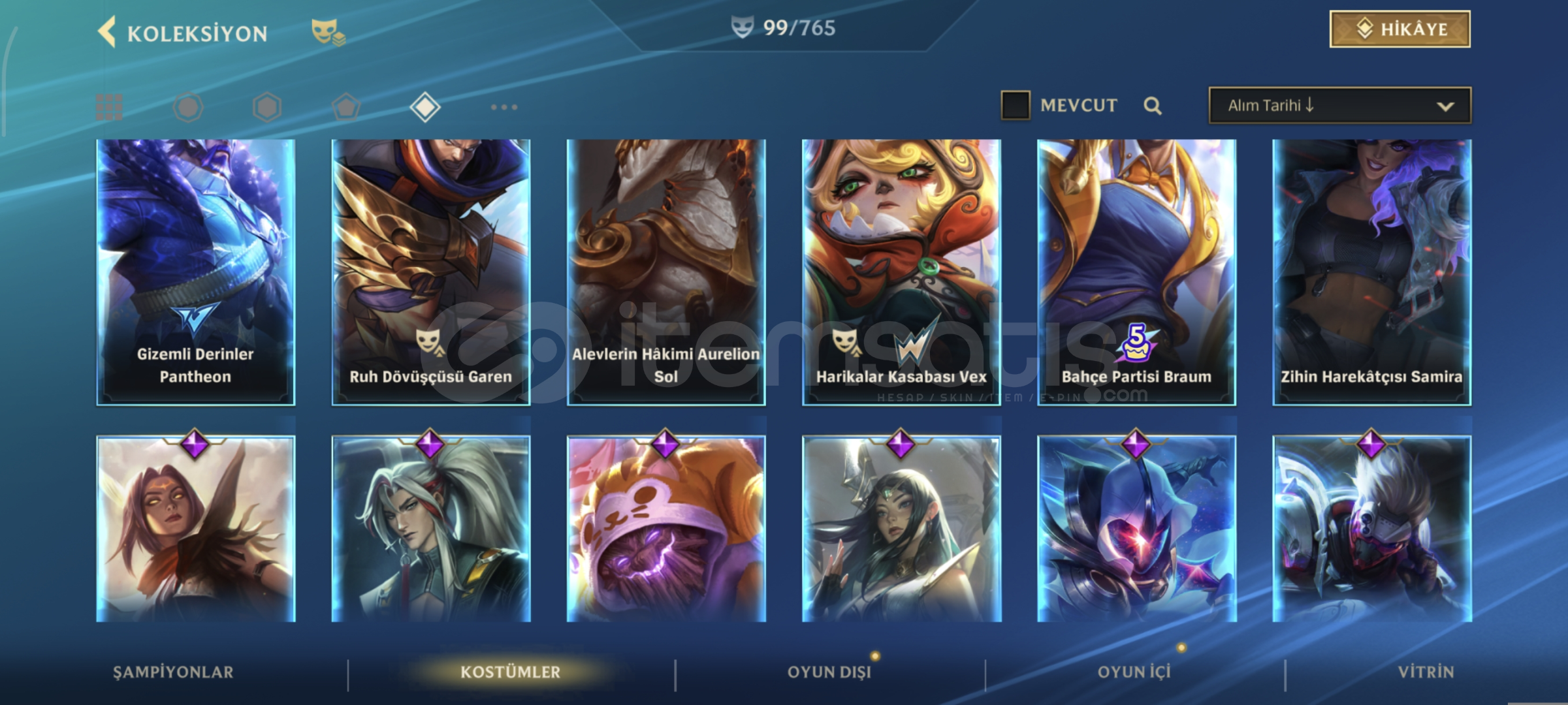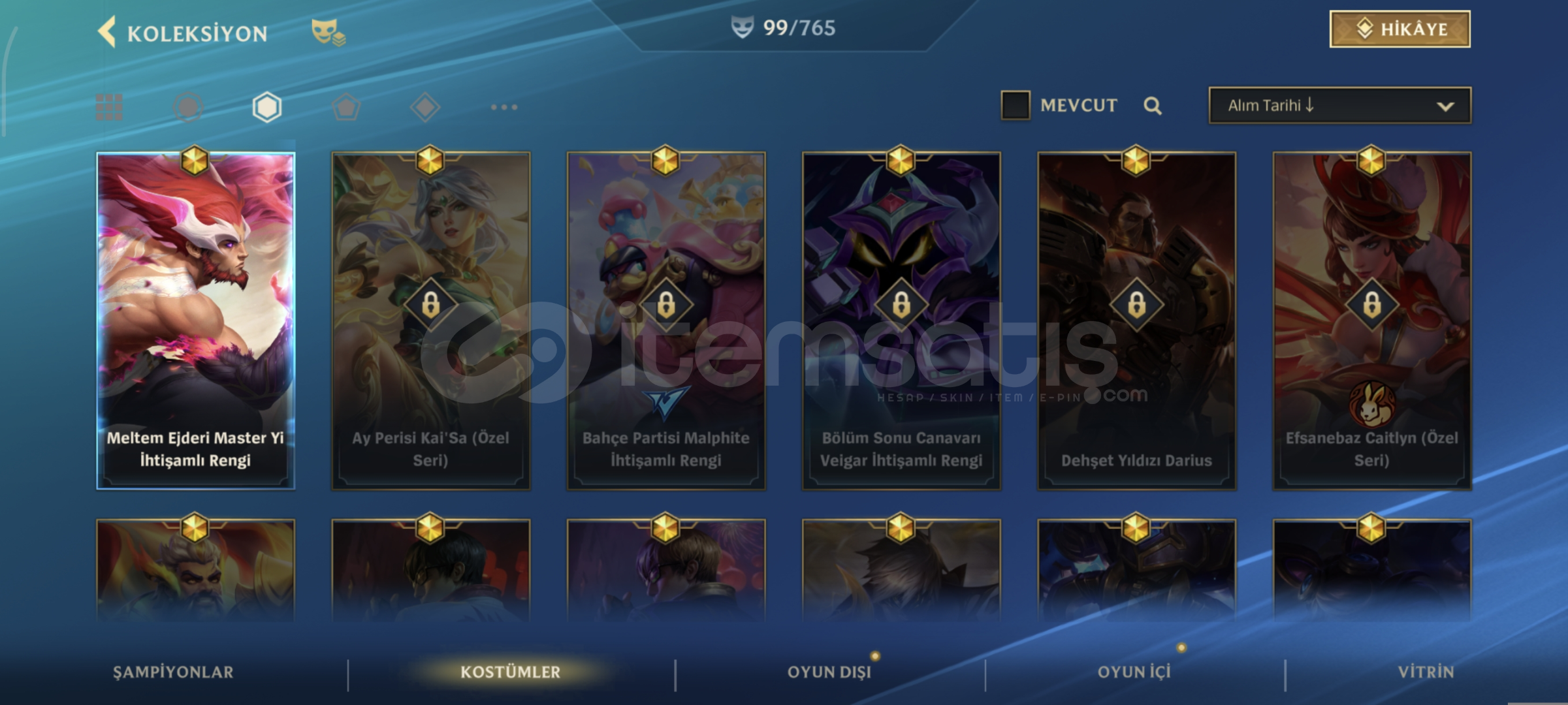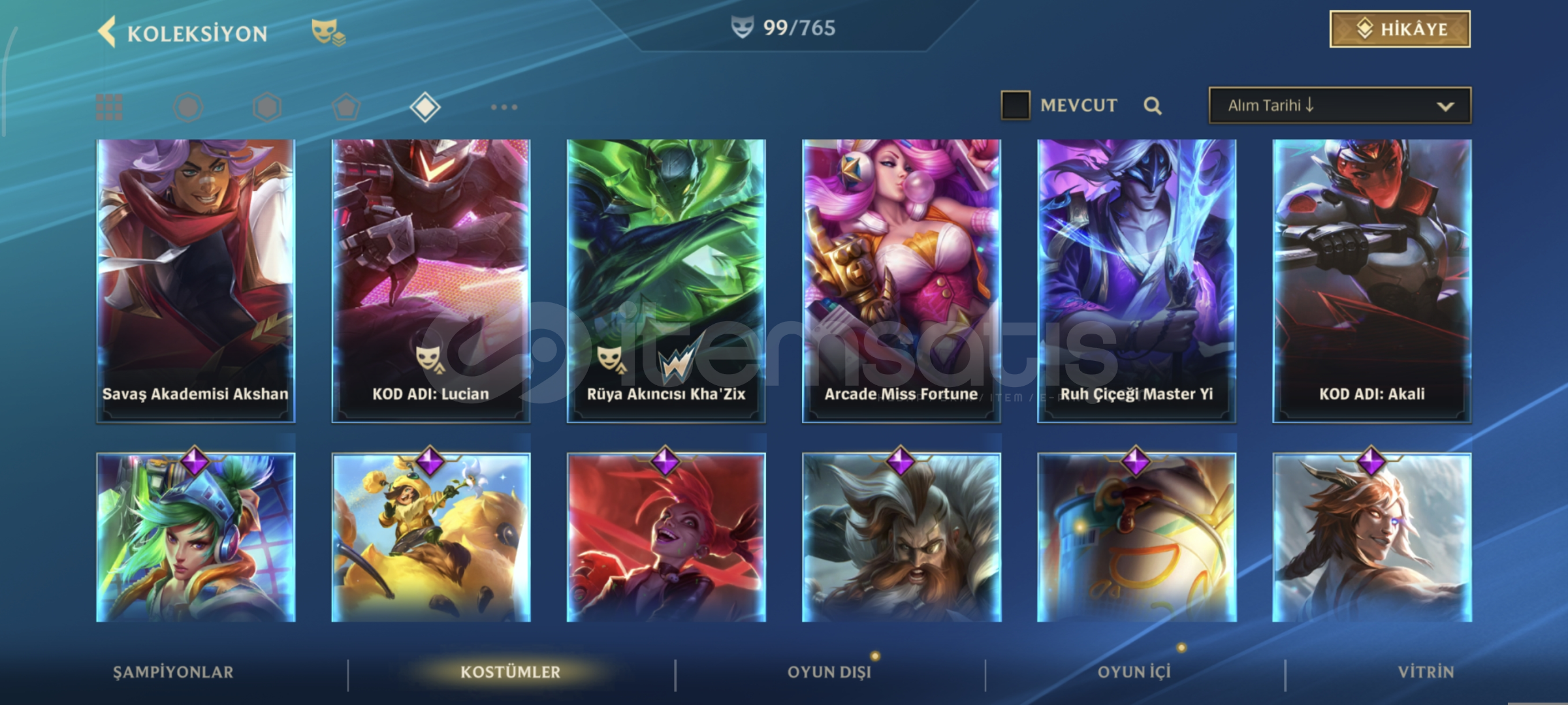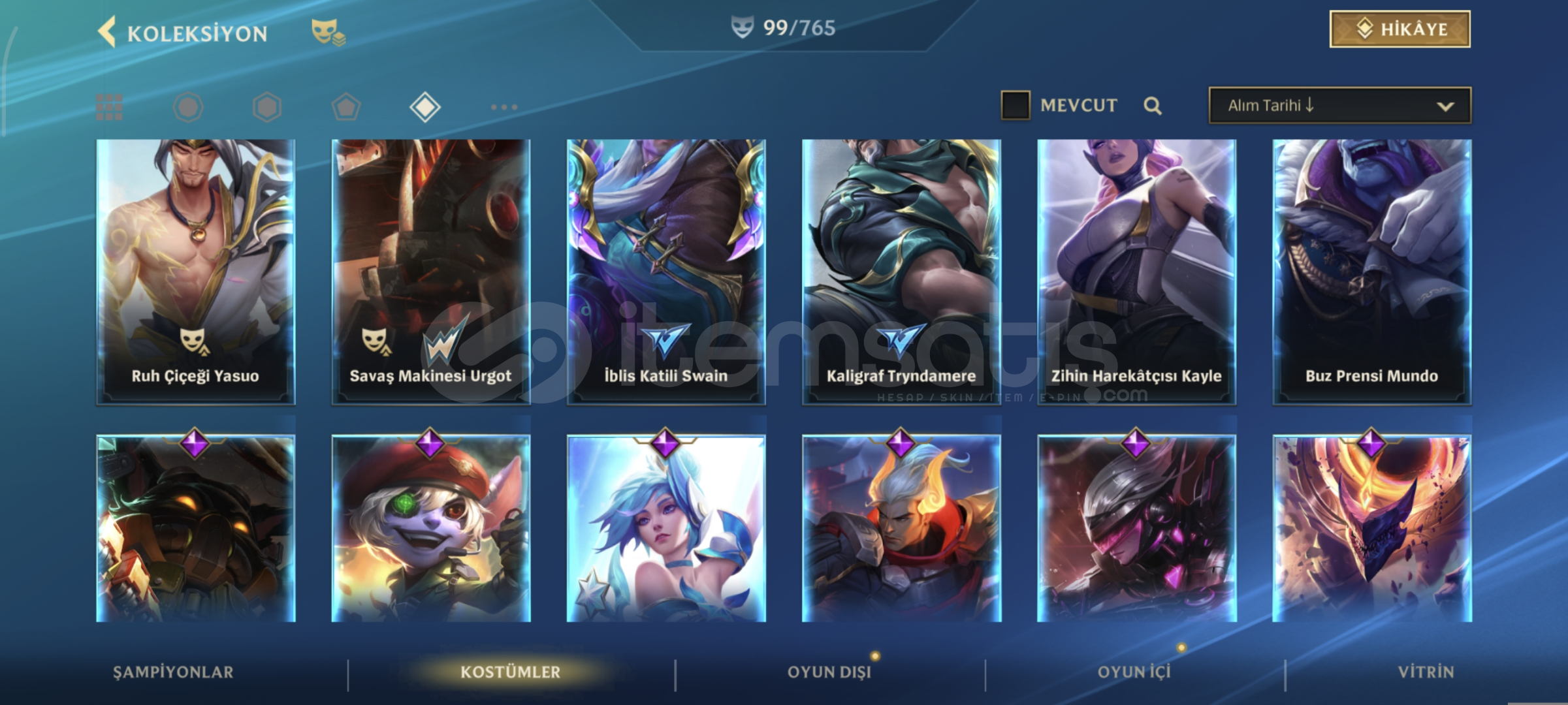 99 skin GM görmüş hesap valo 7 animasyonlu skin 2 bıçak hepsi max level çoğunun full rengi açık lol 88 skin 2 ihtişamlı 1 ebedi 13 efsanevi