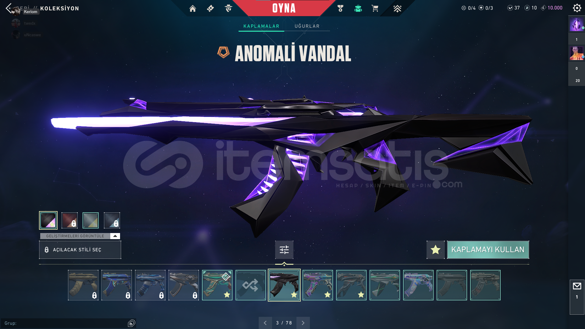 Yücelik 1 (78kp) Hesap Görselde Mevcutdur Tüm skinler yazarakda ulaşabilirsiniz Hesap dolu dolu Anomali 2.0 Seti Ulu pençe setiSır çiçeği seti Rgx 3.0 Seti Vandal ayrı olarak : Felaketin kalbi Delipop Yağmacı Yitik Ejderin Buyruğu Phantom : Sırçiçeği Sheriff : anomali Sırçiçeği Ghost : Anomali Afet ,Ulu pençe ,Afet Bıçak : Anomali kelebek ,RGX karambit , ulu p...