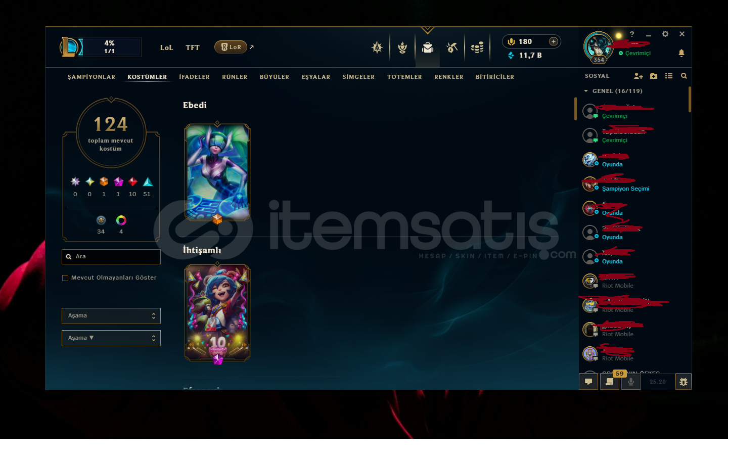 İÇİ DOLU HESAP 8 YILLIK LOL HESABIM DA VAR. NAKİT PARAYA İHTİYACIMDAN SATIYORUM.