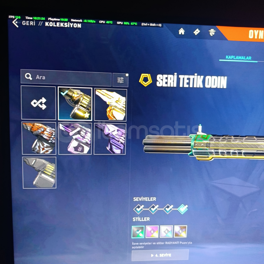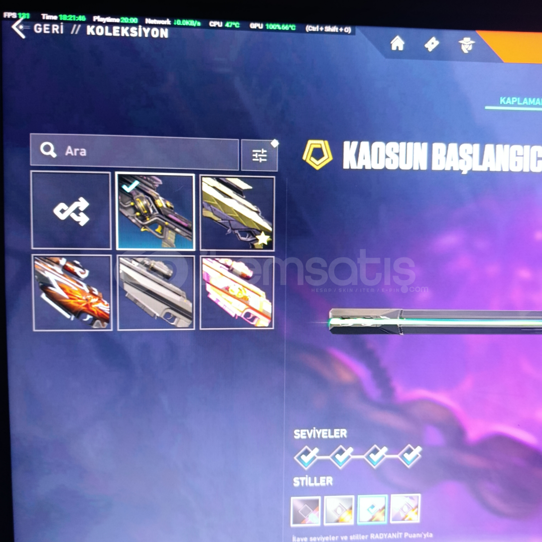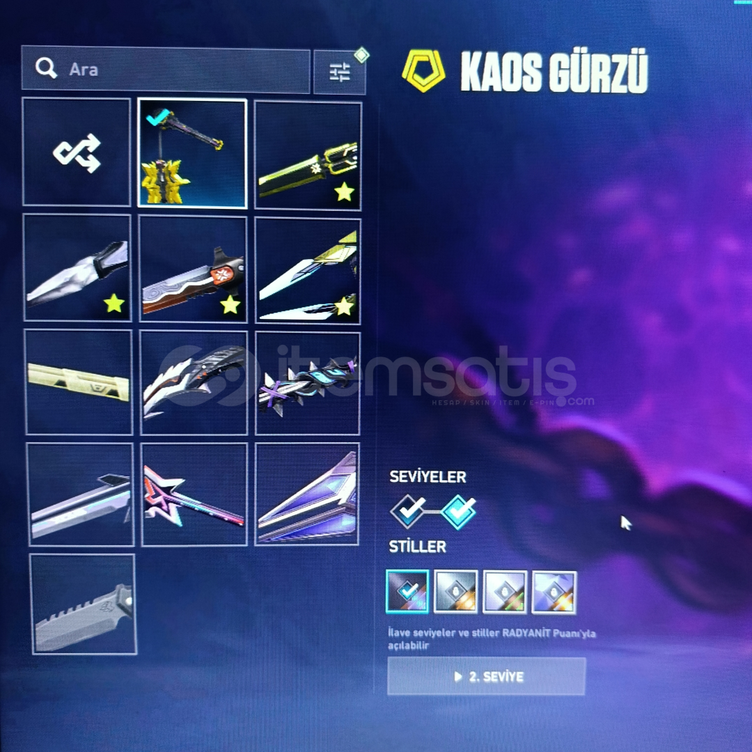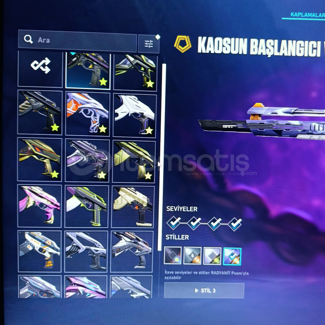Hesapta olan skinlerVandalKaos vandal Champions 2025 vandalGaianin intikami vandalİyon vandalFaz koruyucu vandalYağmaci vandalUlu pençe vandalYıldız belası vandalKronimi vandalAsil vandalCyrax vandal////////////PhantomKaos Seri tetikProtokolYağmaci//////////OperatörKaos PPIYıldız belası PPI/////////Odin Seri tetik OdinEvori Rüya kanatları odin/////////GuardianCyrax guardian//////////BulldogKaos BulldogYıldız belası...