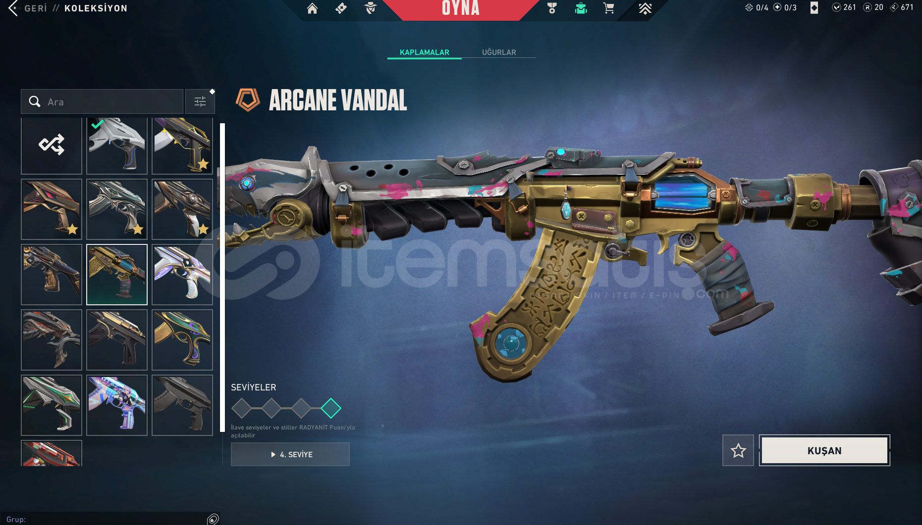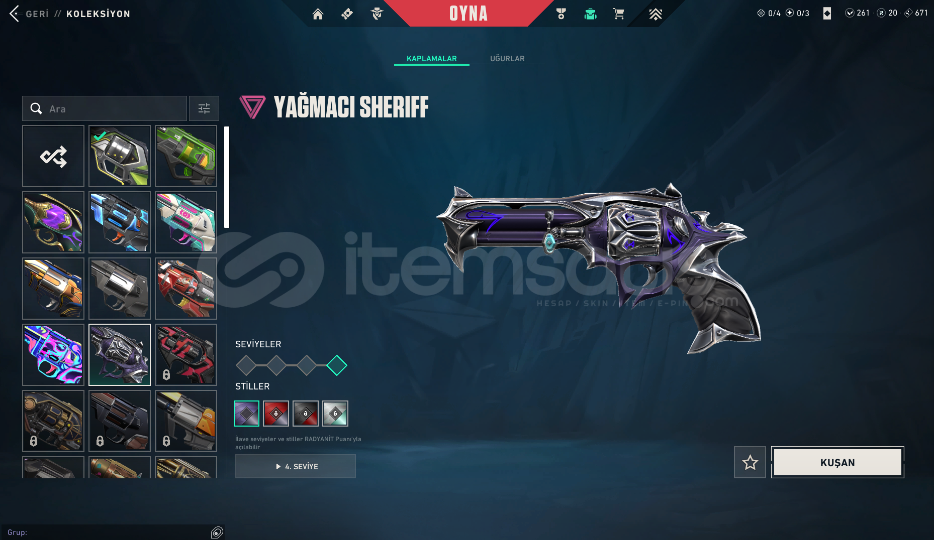 Bunlar dışında skinler fotoğrafta görünüğü gibidir her silahta skin bulunmaktadır, Ben burada en çok tercih edilen silahları listeledim.