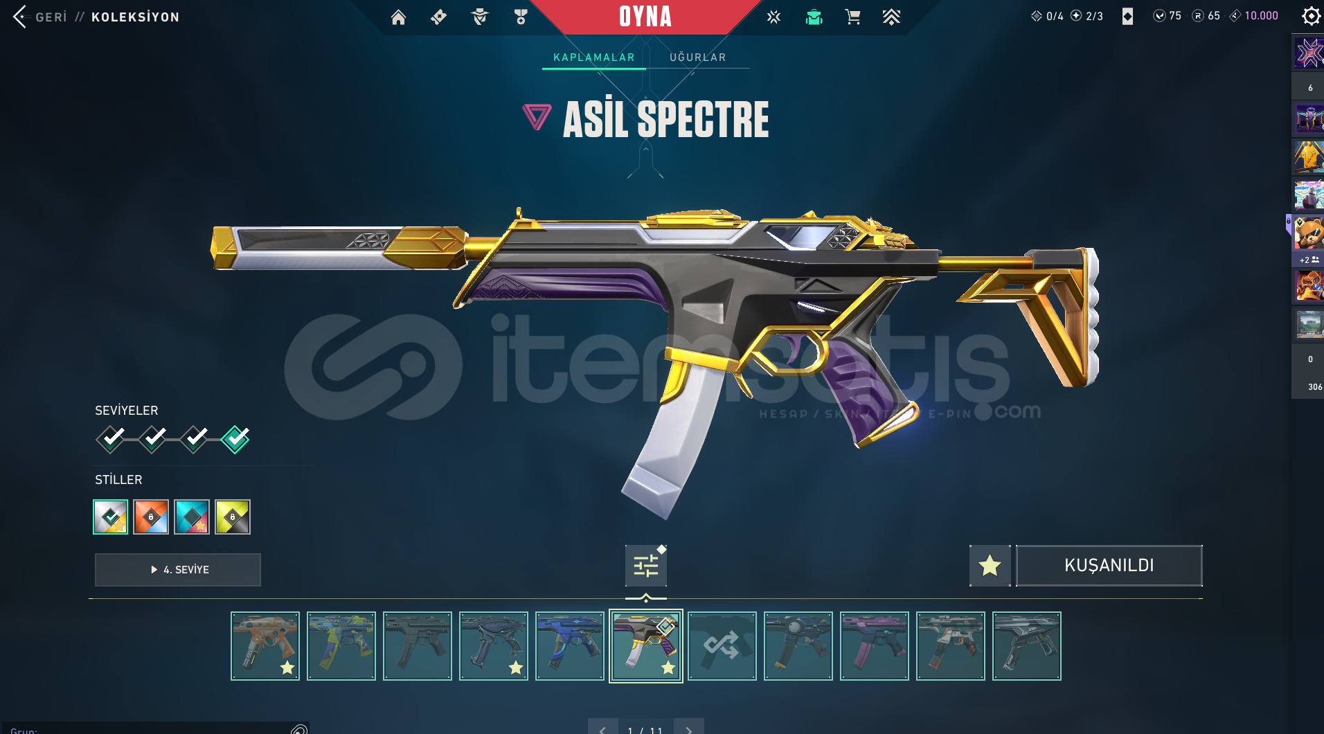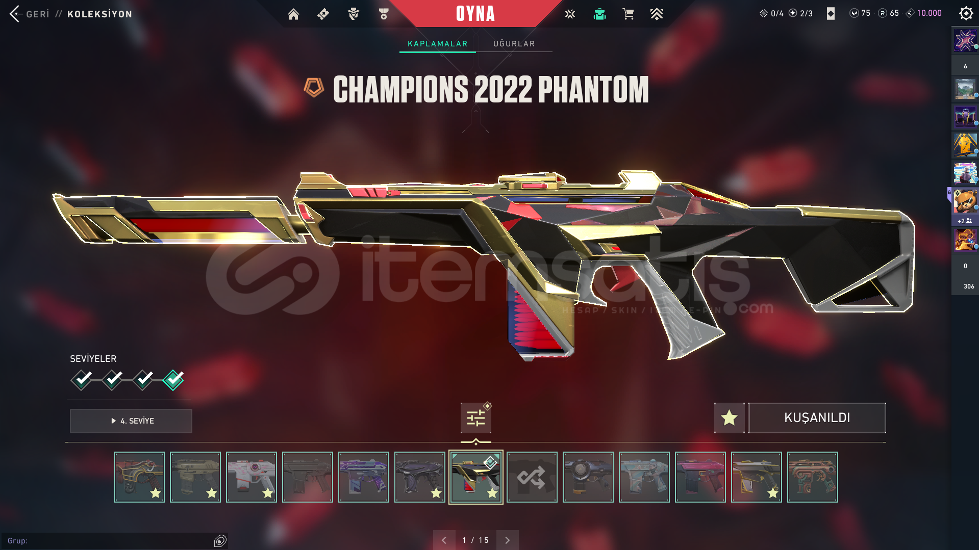 *Hesabın sunucusu Türkiye'dir.*Hesapta herhangi bir ban söz konusu değildir.*Hesabı aldıktan sonra e-mail ve şifre değişimi yapabilirsiniz.*Hesapta 169 skin(31'i magazadan satın alınmıstır.) bulunmaktadır.*Animasyonlu skinlerin yükseltilmesi yapılmış ve ek olarak 65 Radyanit ve 10000 Kingdom Puanı bulunmaktadır.*Hesap güncel olarak Elmas 1 rankında bulunmasına rağmen VCT 25 E3'...