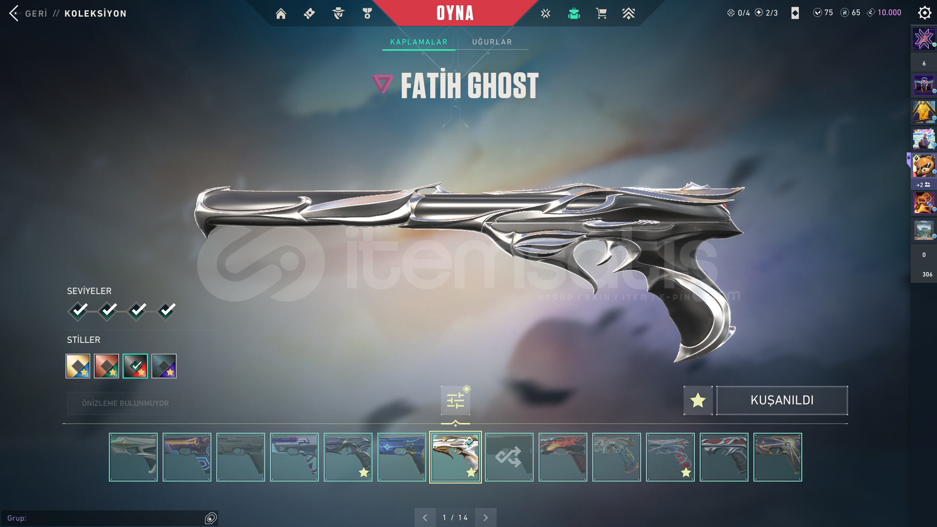 *Hesapta 169 skin(31'i magazadan satın alınmıstır.) bulunmaktadır.