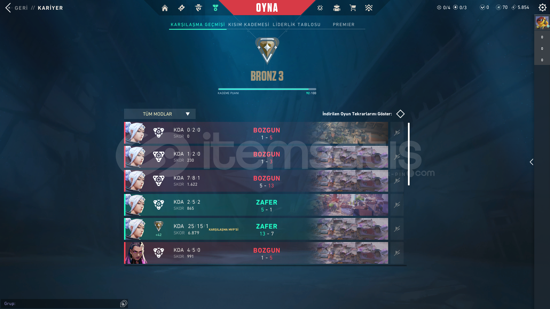 Valorant | 20 Seviye | Bronz 3 | Boş Hesap