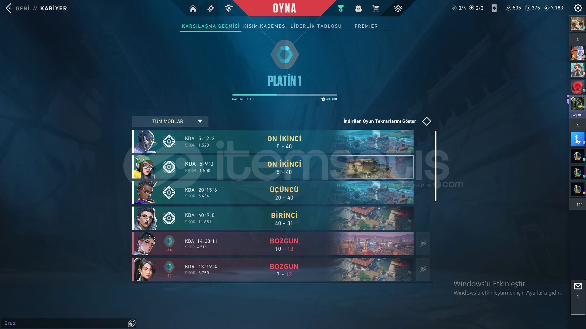 VALORANT 20.000VP DEĞERİNDE PLAT HESAP