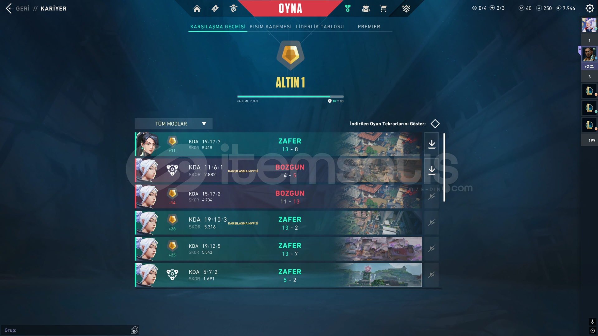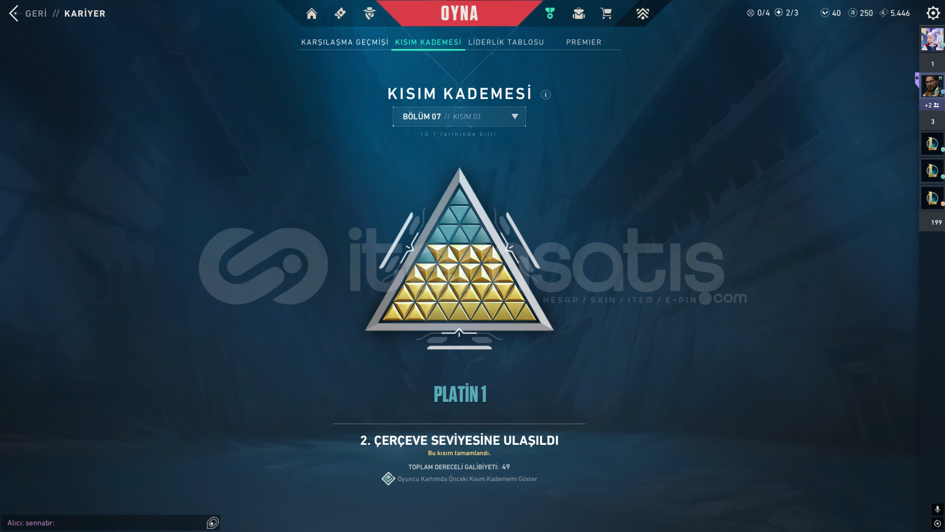 • Hesapta en yüksek rank plat 1'dir.
