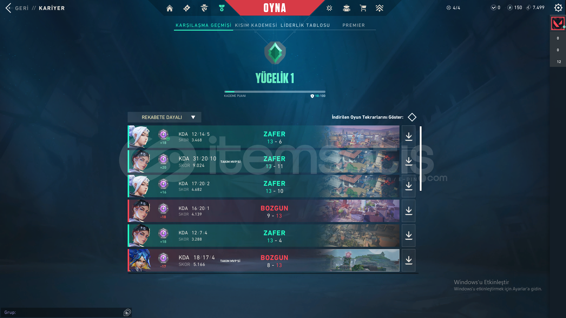 MMR Yüksek Mainlemelik 2025 V2 Yeni Sezon Yücelik 1 10 Kp HesapHesap Boştur içerisinde Herhangi bir skin bulunmamaktadır.İsim değişim hakkı mevcuttur.Hesap Türkiye sunucu 5 ping ile oynanmaktır.Bölgesi Fransadır değiştirmek isterseniz ticket atarak değiştirilebilirsiniz.