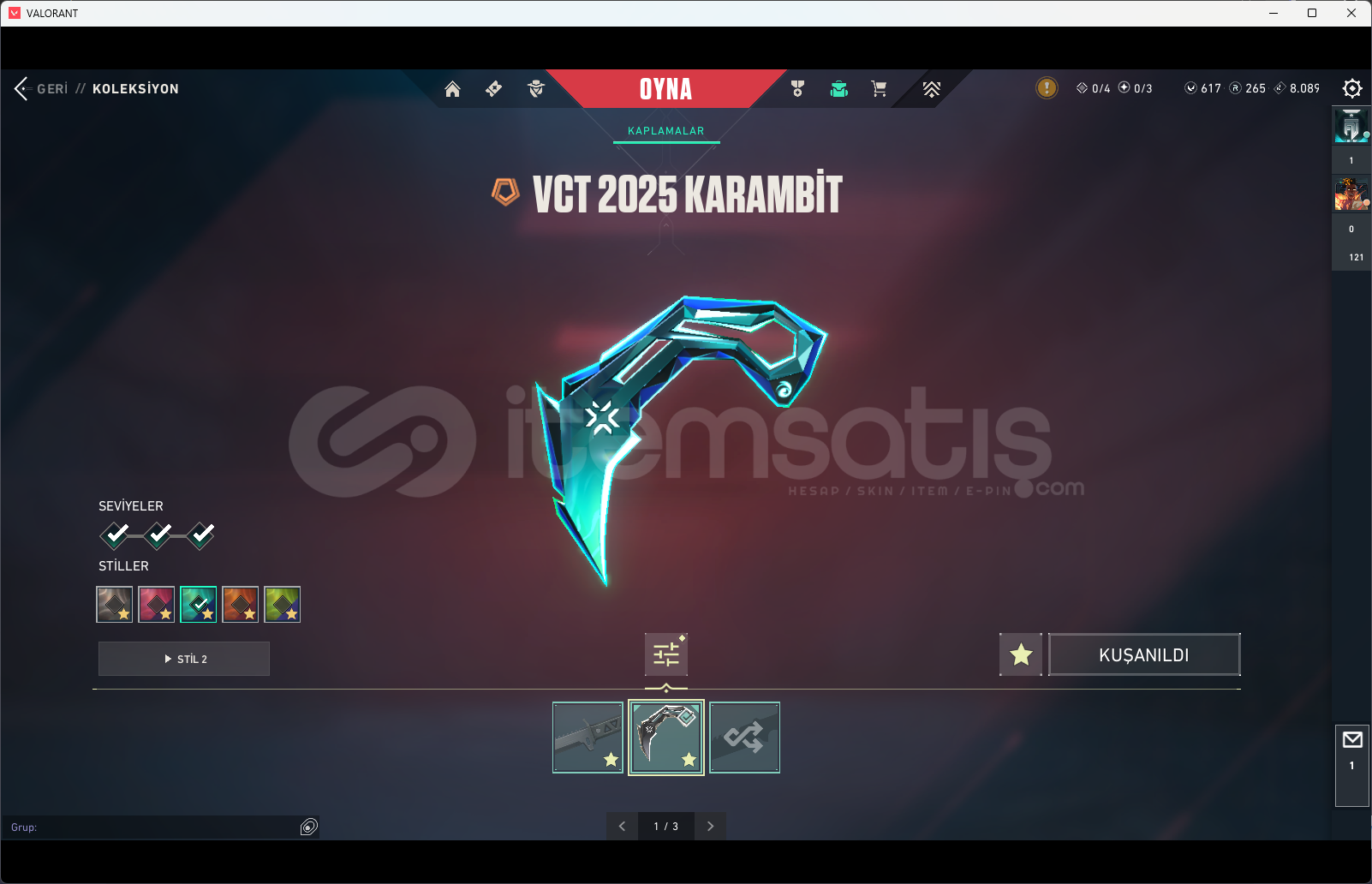 Geçmiş skinlerden ve şuanda alınamayan VCT 2025 Karambitte bulunmaktadır.