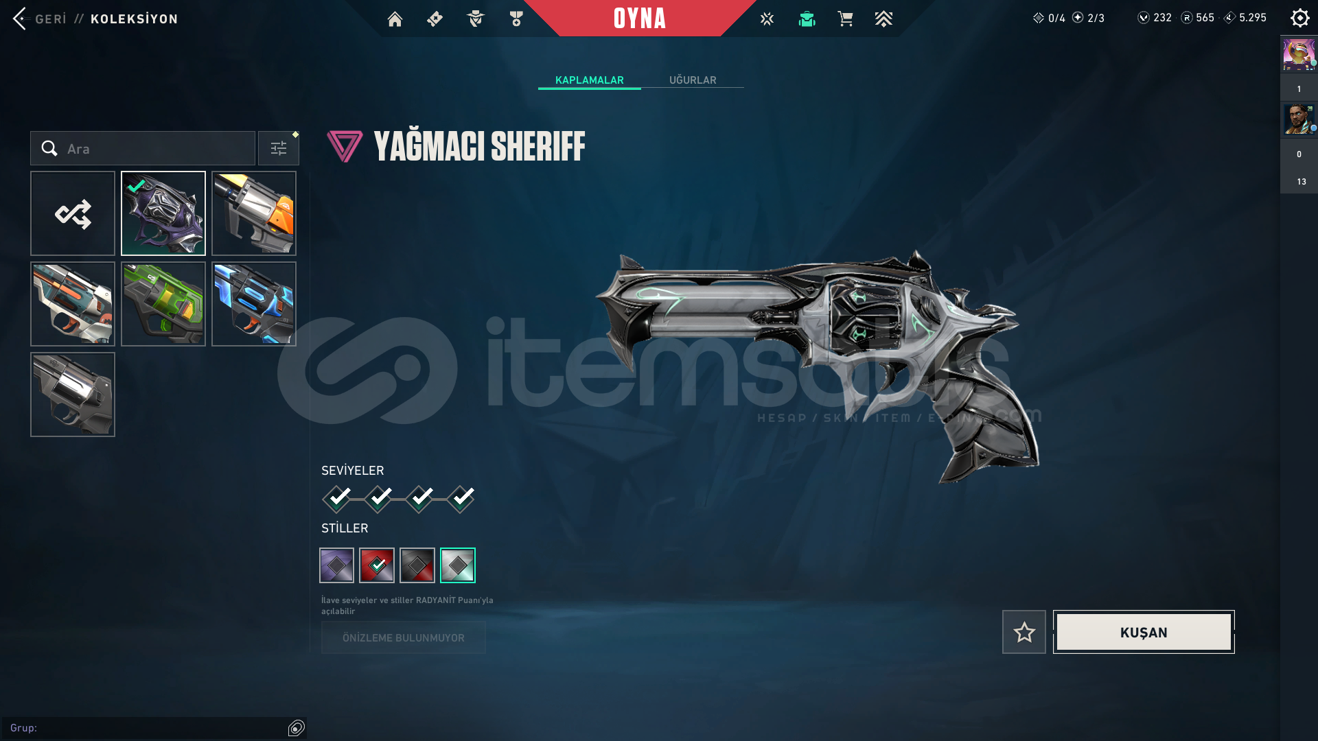 Hesapta 3 adet vandal 1 adet asil classic 1 adet sheriff 2 adet bicak 2 battle passli hesap