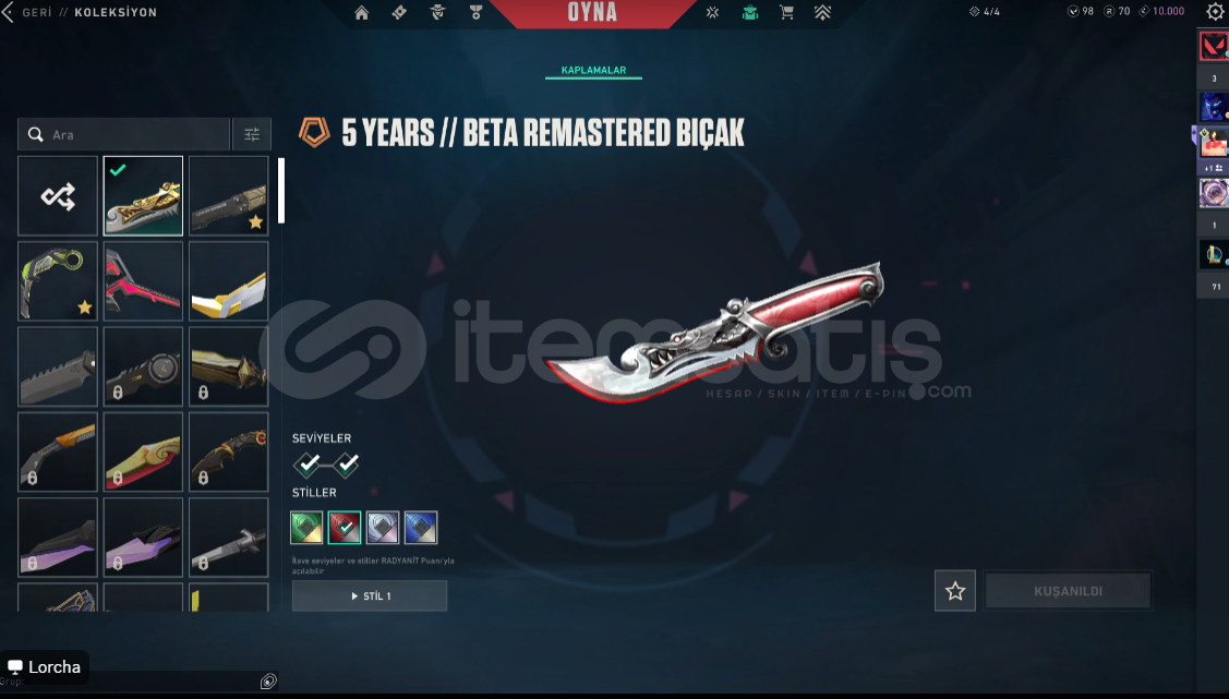 Hesabın herhangi bir banı bulunmamaktadır.Hesabın ilk sahibi değilim 2-3 yıldır herhangi bir sorunu çıkmamıştır.Bıçaklar :5.YIL Beta Remastered BıçakÖzel harekat KelebekRGX KarambitAsil karambit 2.0Battlepass BıçakVandal:Kaos VandalFaz Koruyucu VandalKuronomi VandalEjder Ateşi VandalPhantom:2022 Champions PhantomGhost:Faz Koruyucu GhostSheriff:Aemondir SheriffBunlar dışında ...