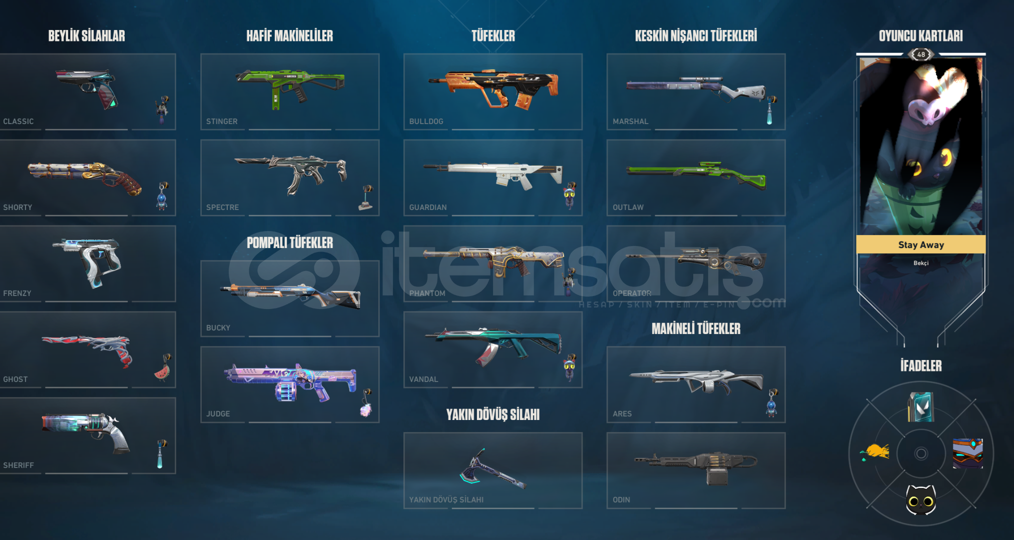 Asil ClassicOni shortyGaia GhostSeri tetik sherifyitik spectreneptum guardianoni phantomseri baltaköken operatorseri tetik marshaliyon aresSkinleri bulunmaktadır