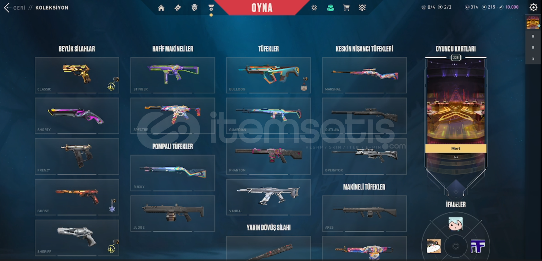 Hesapta 7 Adet Geliştirilebilir Vandal1 Adet Geliştirilebilir Phantom 2 Adet Geliştirilebilir Sheriff1 Adet Geliştirilebilir Ghost1 Adet BBL Classic1 Adet Geliştirilebilir Operator1 Adet Özel Harekat Kelebek 1 Adet Yağmacı Hançer