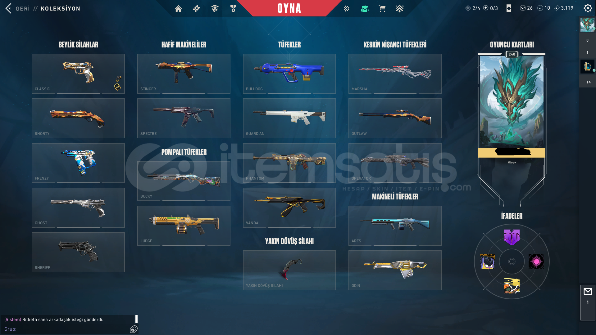Merhaba hesabımı oyunu bıraktığım için satıyorum hesap beta hesabıdır kendi şahsi hesabım ben oluşturdum hesabın geri çekilmeyiceğine dair ömürlük garantisi vardır hesap şuan 240 seviye aktif rankı da plat ama yücelik2 görmüşlüğü var hesapta 21 bıçak 11 vandal 4 phantom vardır passleri saymadığım şekilde hesap dopdolu oynarken sıkılma ihtimaliniz yok şimdi den alıcak olan kişiye hayırlı olsun.