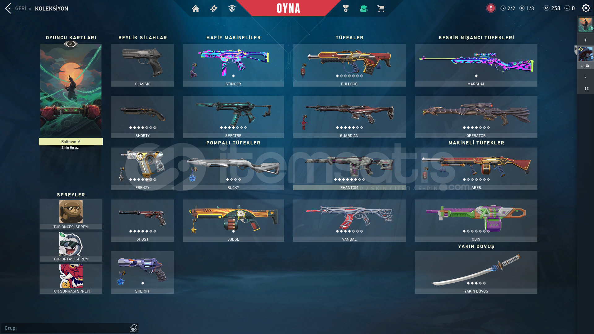 Hesaba Toplam 7000tl YatırılmıştırHesaptaKaosun Başlangıcı ShortyKöken FrenzyYağmacı ghostAfet Spectreİyon BuckyTakımın Ası JudgeOni BulldogYağmacı GuardianProtokol PhantomOni PhantomBlastx PhantomAğaç VandalOni VandalZamanın Ötesi VandalEjder OperatörOni AresBlastx OdinRGX KelebekOni KatanaVct Lock İN bayonet1 Adet bp bıçağı vardırFatih Stinger Kız...