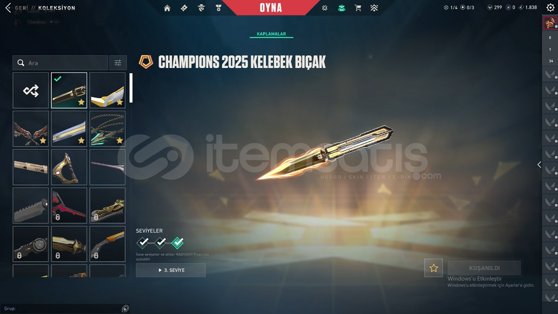CHAMPİONS 2025 KELEBEK FELAKETİN KALBİ HANÇER YILDIZPARÇALAYAN ASİL KRAMBİT REFAH VE ÇÖKÜŞ BIÇAK CHAMPİONS 2025 VANDAL YAĞMACI VANDAL FELAKETİN KALBİ VANDAL ONİ PHANTOM RADYANT KRİZİ PHANTOM FELAKETİN KALBİ PHANTOM YİTİK CLASSİC FELAKETİN KALBİ SHORTY ASİL FRENZYAFET GHOST ANOMALİ SHERİFF KAOS STİNGER FELAKETİN KALBİ SPECTREZİ...