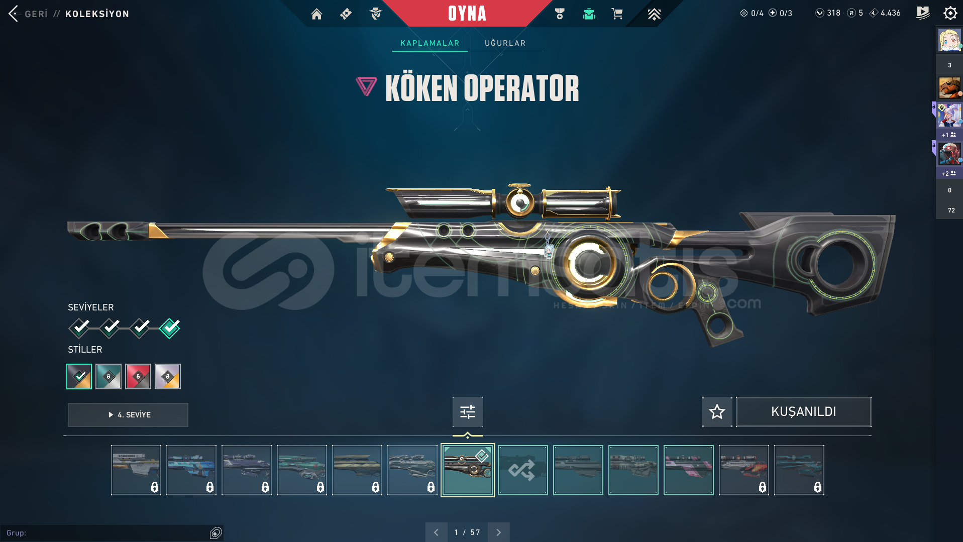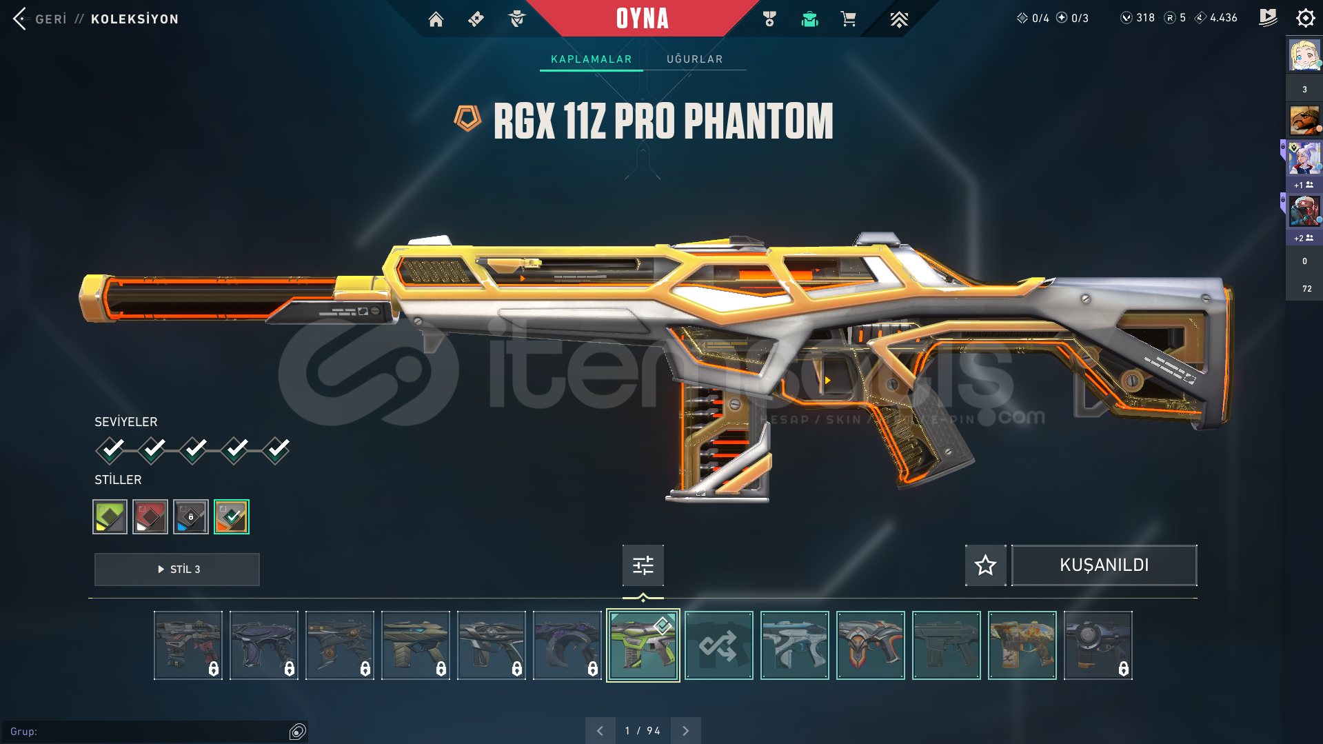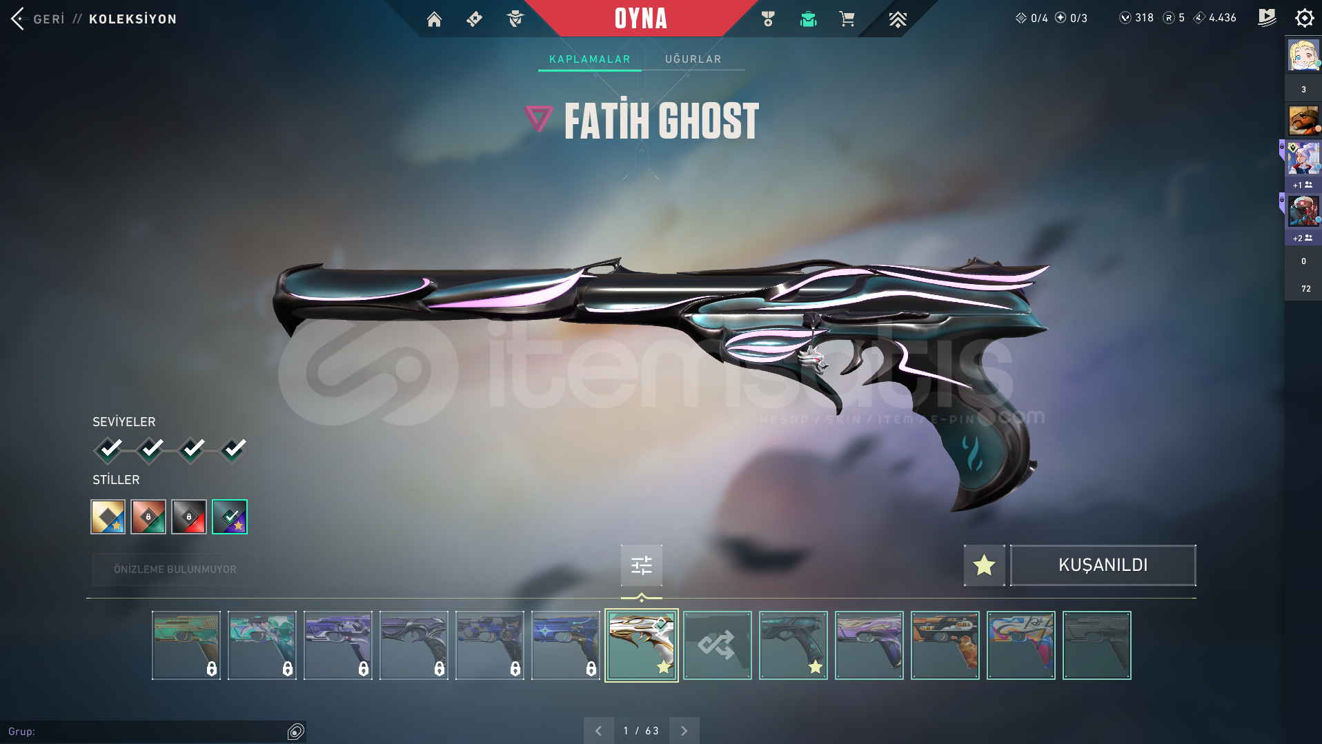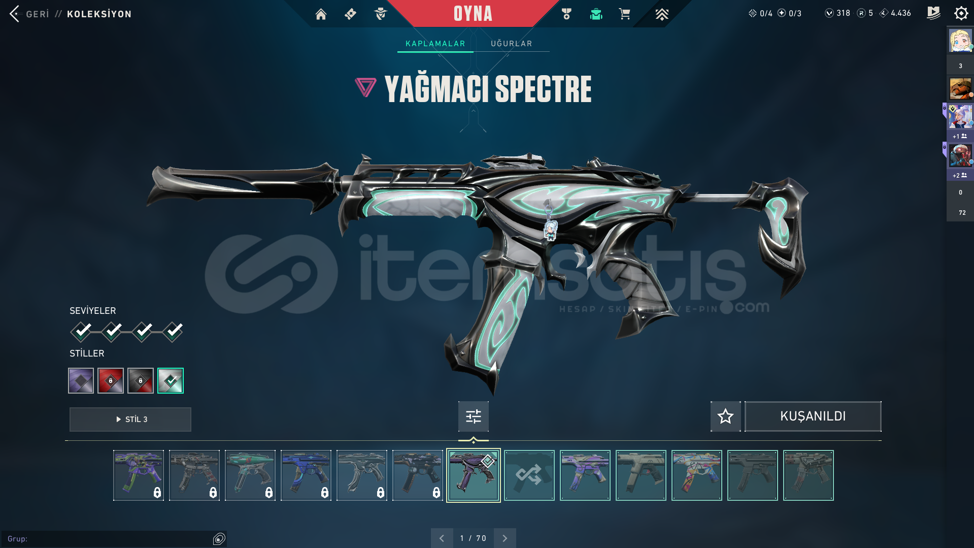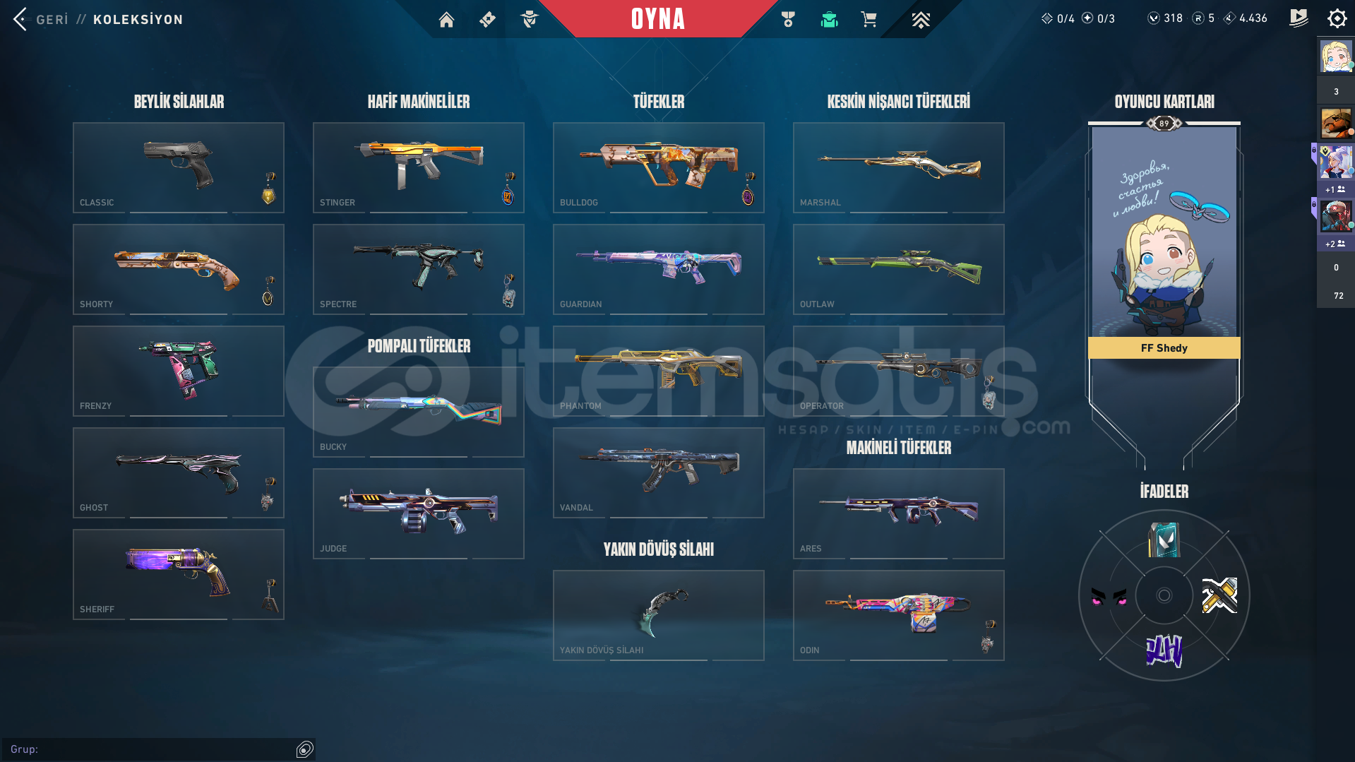 Valorant Kendi Kullandığım Hesap 12000 den 9000 bine indirimVandal: Ejder Vandal Kaos Vandal Evori Vandal Evori Vandal RGX Vandal Gaia Vandal Yağmacı VandalPhantom: RGX PhantomGhost: Afet Ghost Fatih GhostOutlaw: RGX OutlawSheriff: Seri Tetik Sheriff RGX SheriffSpectre: Yağmacı SpectreBıçak: Yağmacı Karambit RGX KarambitOperatör: Köken OperatörMarshal: Fatih MarshalGERİ KALAN HERŞEY FULL BATLEPASS