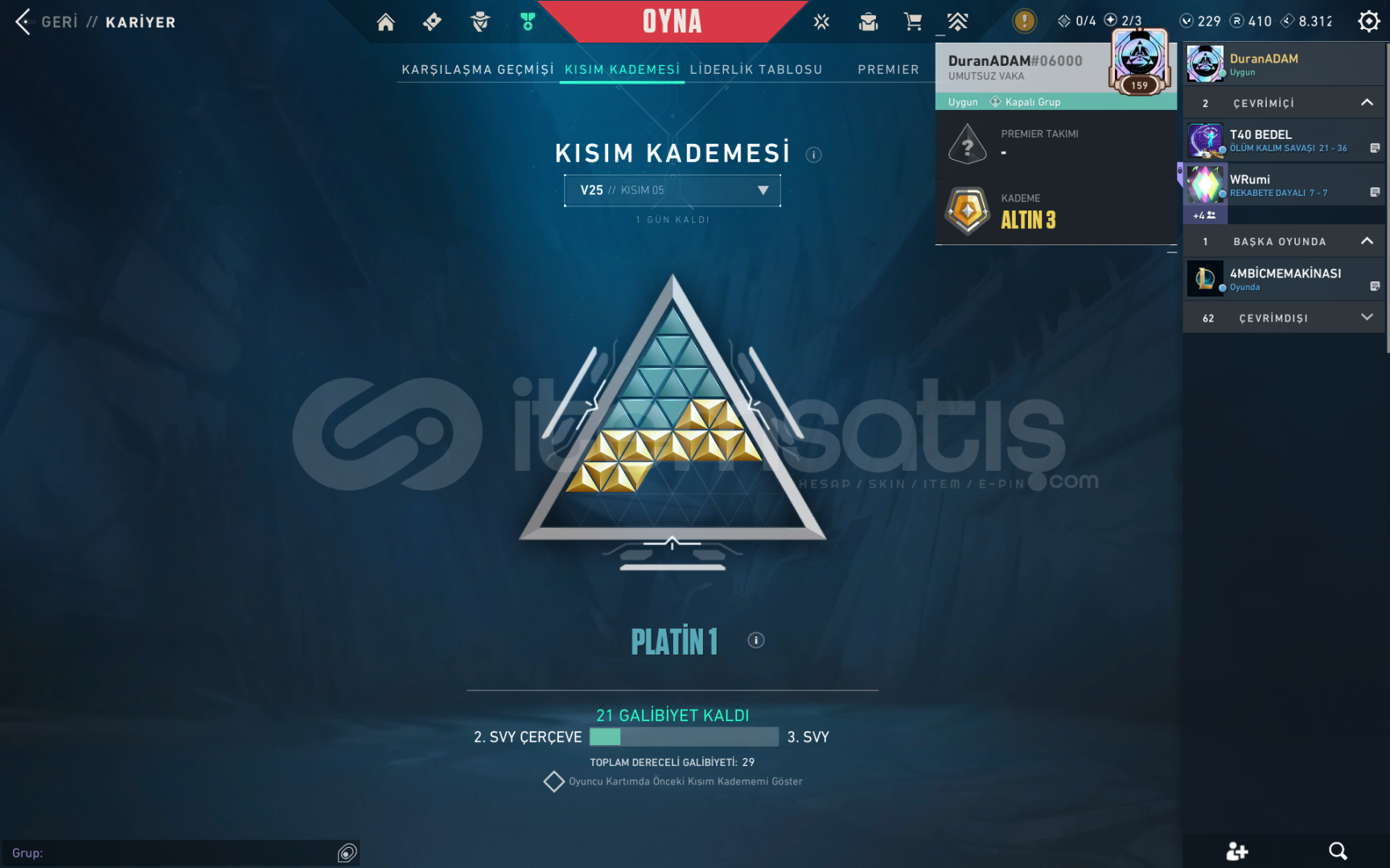 Valo hesabı altın 3, Lol hesabında da güzel skinler vardır tft altın IV derecelisi unranked valo hesabında battlepass skinleri açıktır ve yanında ek olarak güzel skinler vardır hesap adını süre dolunca değiştirebilirsiniz mail değişimi ile hesap tamamen size ait olacaktır