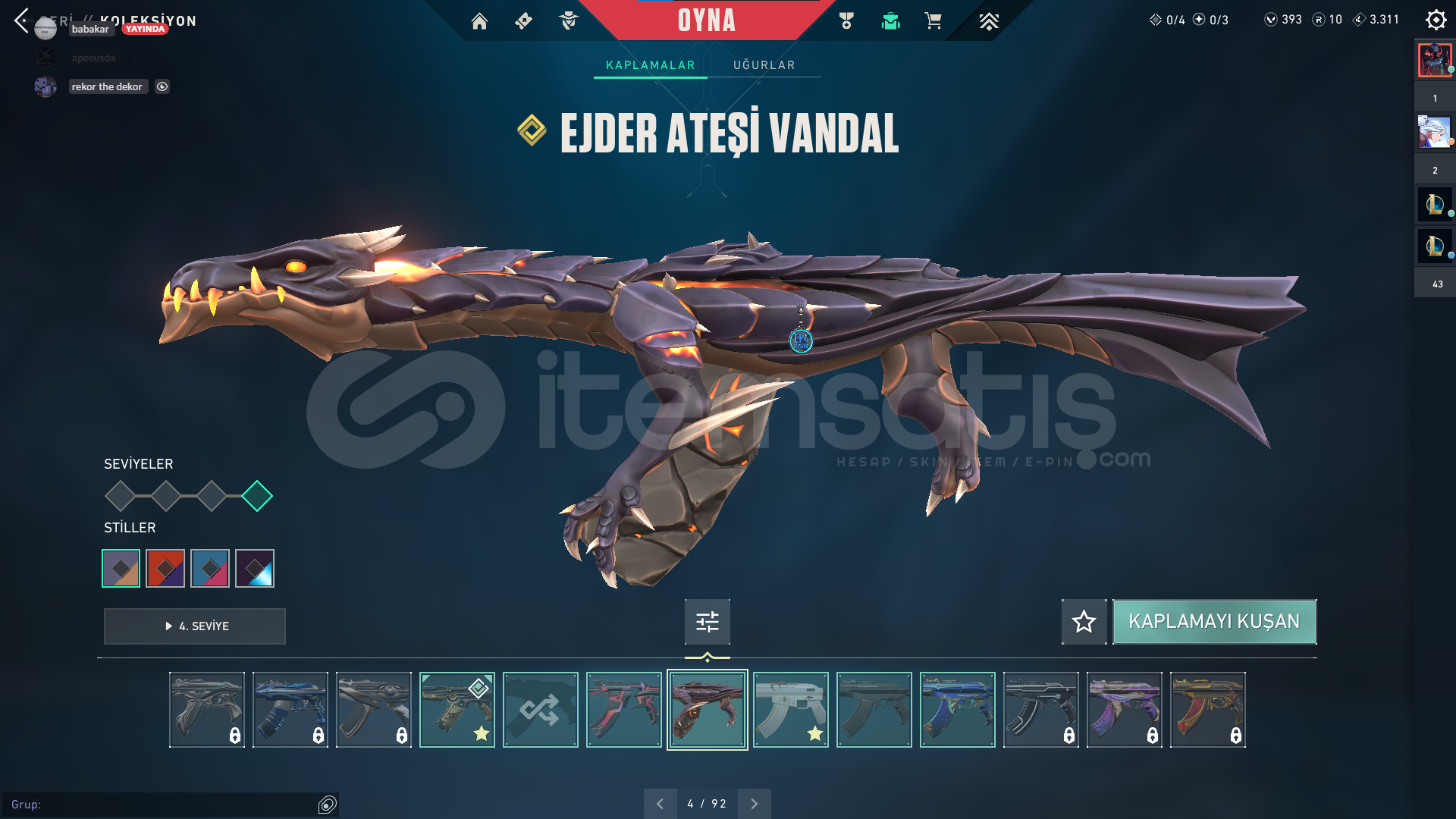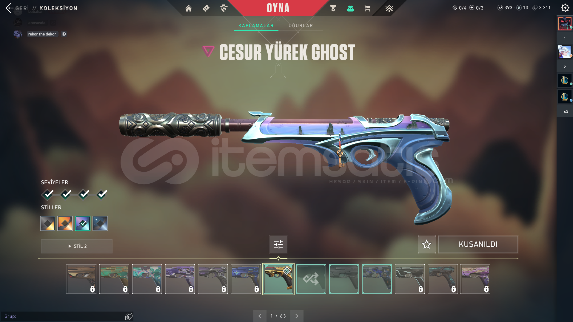 Bıçaklar:BETA REMASTERED//2 YEARS RGX KATANAVandallar:EJDER VANDAL AEMONDIR VANDAL NEPTÜN VANDALPhantomlar:ZAMANIN ÖTESİ PHANTOM ONİ PHANTOMCESUR YĞREK GHOST VE YILDIZ BELASI PHANTOM bulunmakta2 battlepass bulunmaktaMail değişmeli