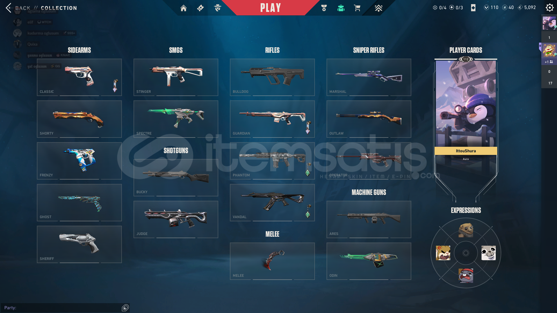 Hesaptaki Skinler;Gainanin İntikamı GhostKaosun Başlangıcı VandalAsil VandalUlupençe VandalÖzel Harekat PhantomYağmacı Operatörİyon SheriffYağmacı Karambit